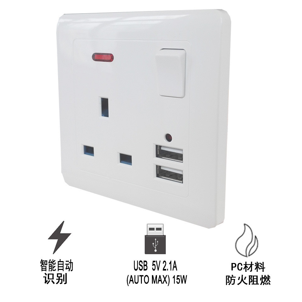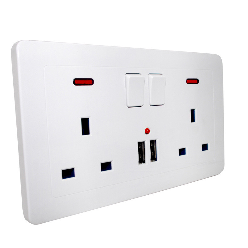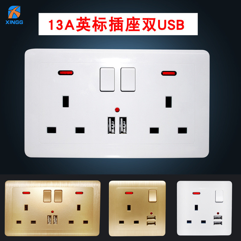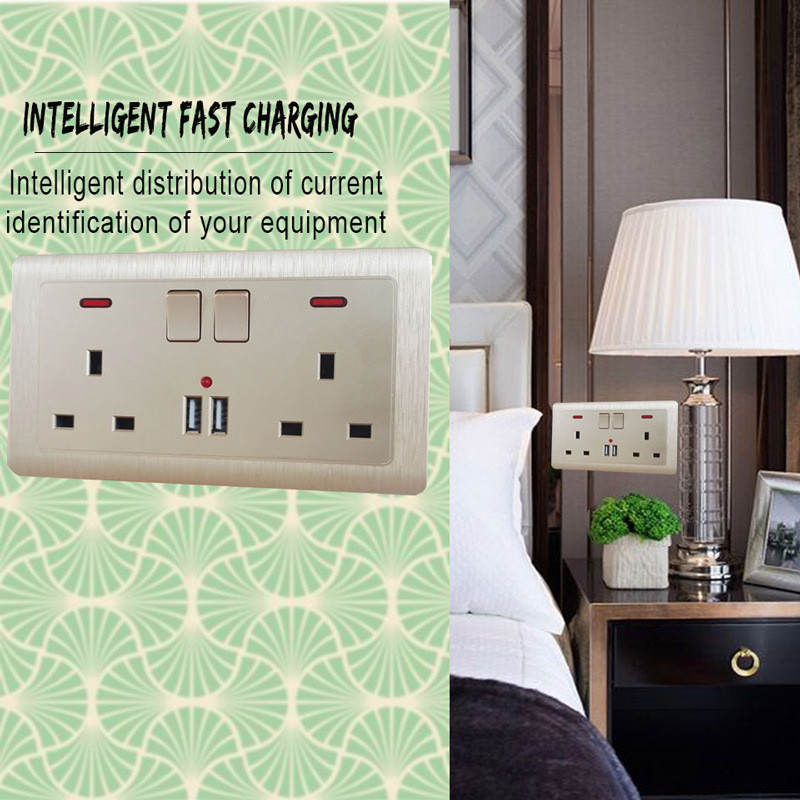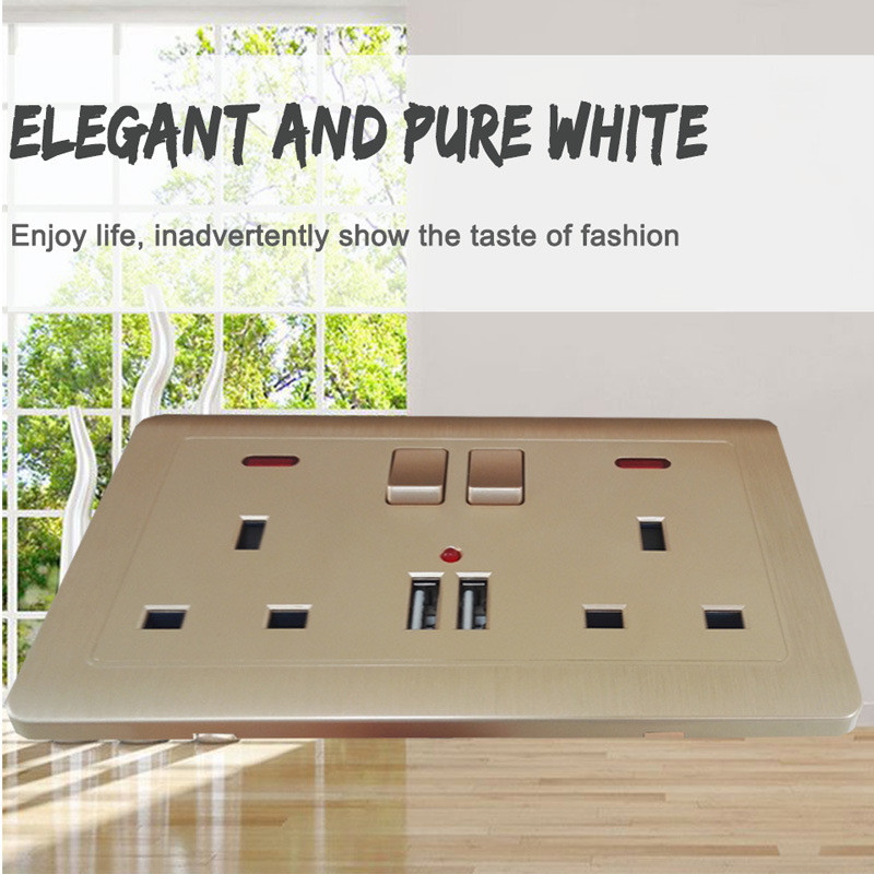 Двойная розетка британского стандарта 13А, двойная панель USB, простой дизайн золотистого цвета Розетка британского стандарта