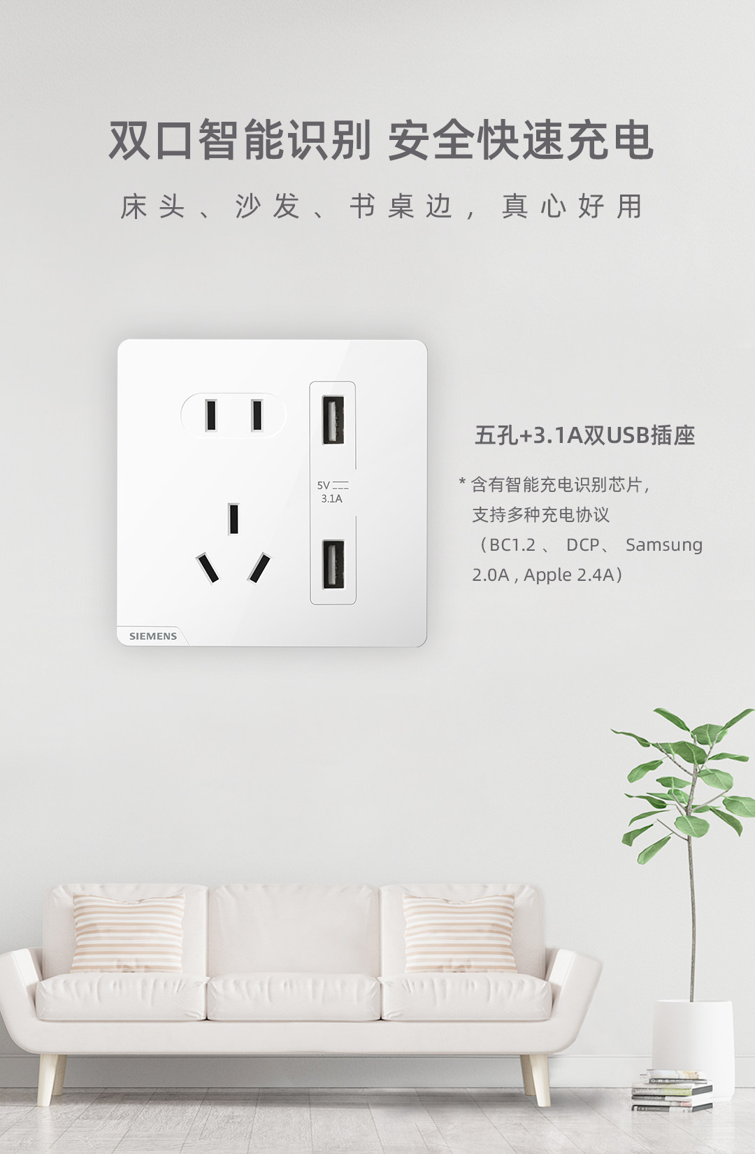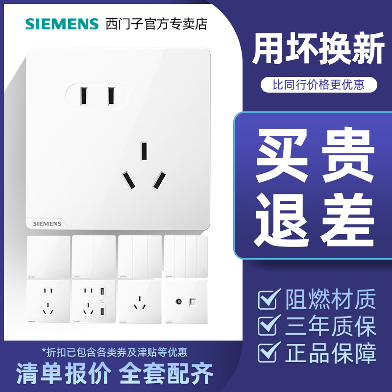 Siemens Switch Socket Haocai Big Board Элегантная белая безрамная еда с пятью -отверстие USB, одно открытое соединение тела 86 Dark Home