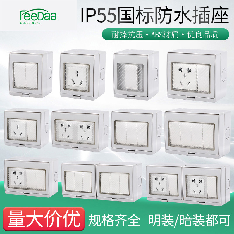 Водонепроницаемый дорожный переключатель, уличный накладной блок питания для ванной комнаты