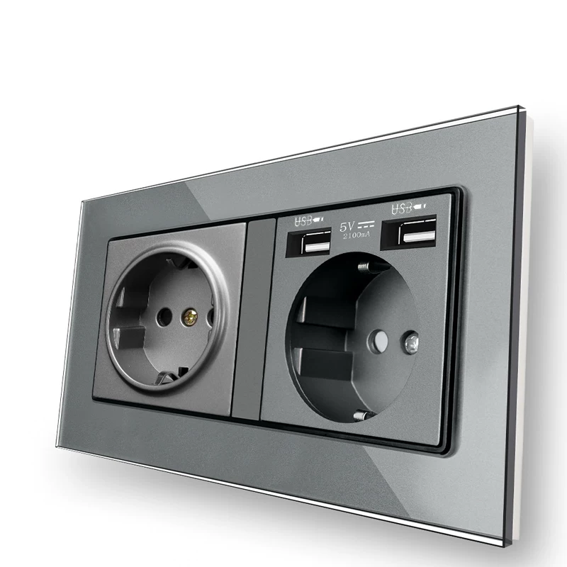 Двойной настенный блок питания, стеклянная световая панель, переключатель, Германия