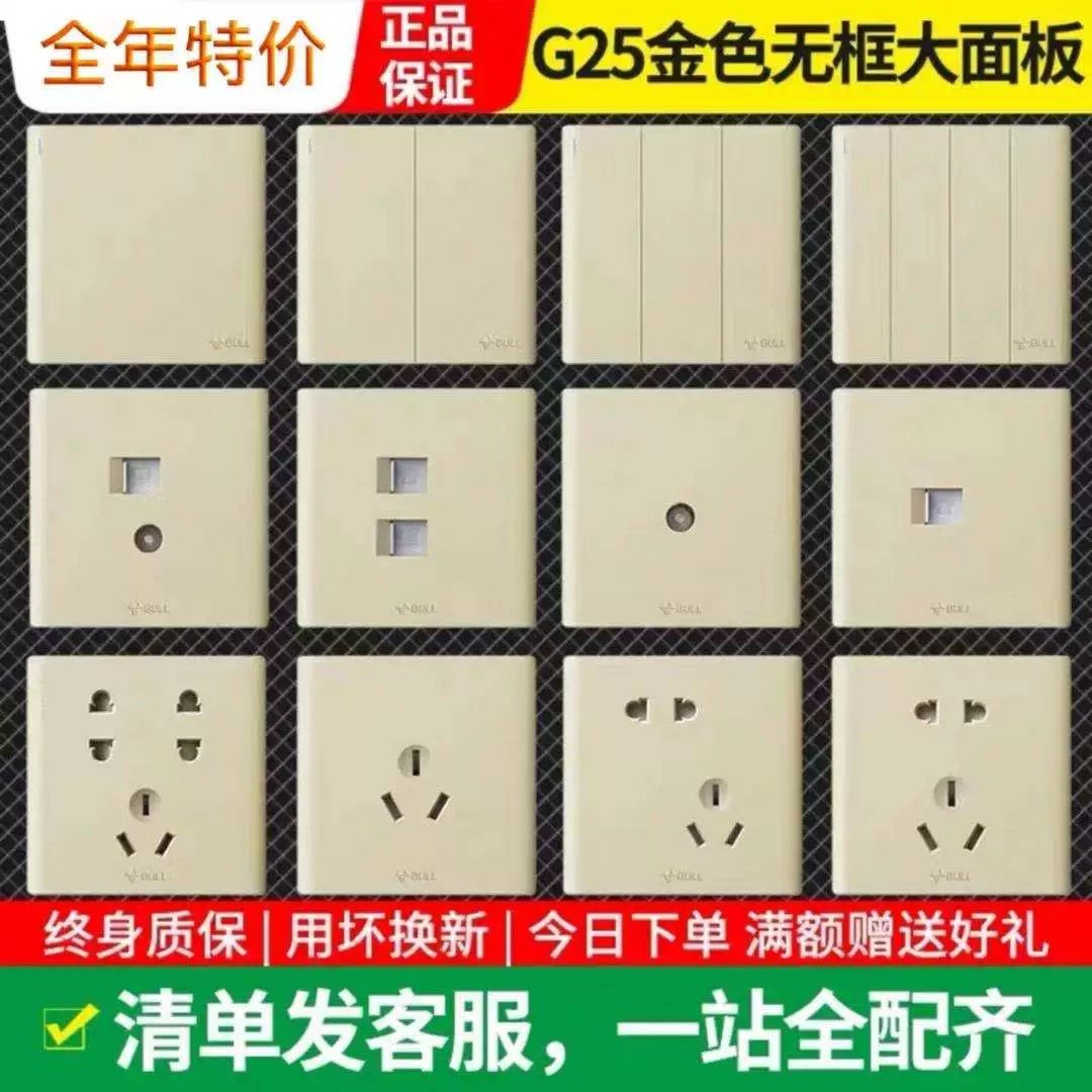 公牛 Switch G25 Gold Panel Socket 86 тип безрамной домашней стены с скрытой USB более пяти отверстий и одно открытие 16A