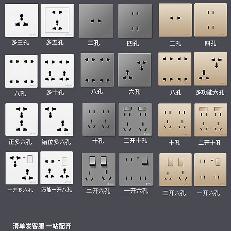 Много -функция одна открытая восемь -отверстие 86 -тип яркая стена, пять -отверстие, шесть отверстий, десять отверстий с переключателями, скрытые гнездовые панели