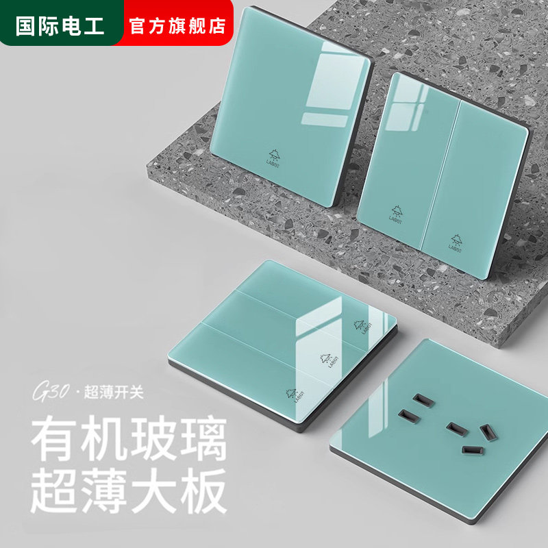 Синий стеклянный настенный переключатель, ультратонкая световая панель, зеркальный эффект