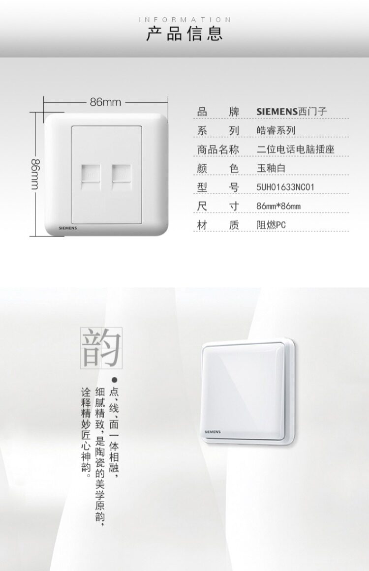 Розетка-выключатель Siemens Haorui нефритовая глазурь, белая розетка типа 86, панель розеток для домашнего телефона, компьютерной сети