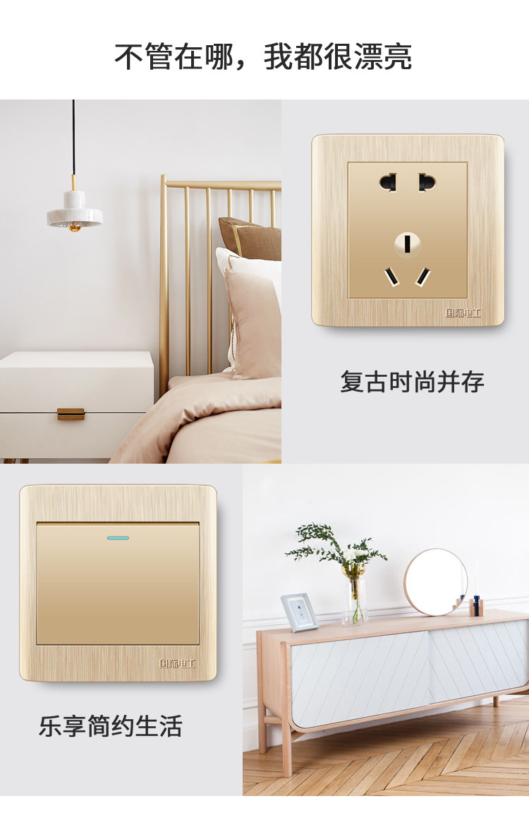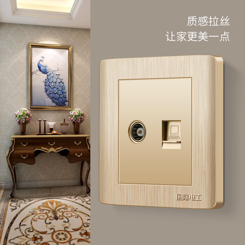 Международный электрический электрический 86 Открыть настенный темный шампанский золотой панель телевизионный розетка