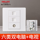 德力西 Тип 86 ТВ двойной компьютерной панели сетевой кабельной сетевой сетевой сетевой сеть кабельной сети два -ин -сикс