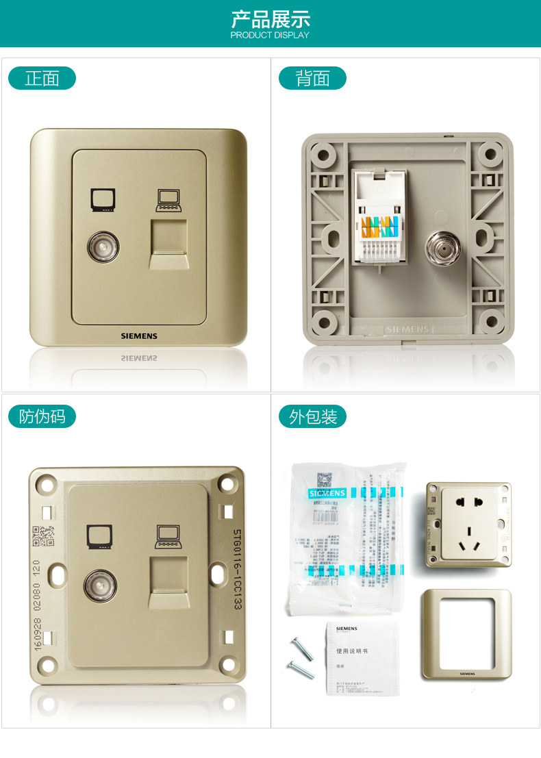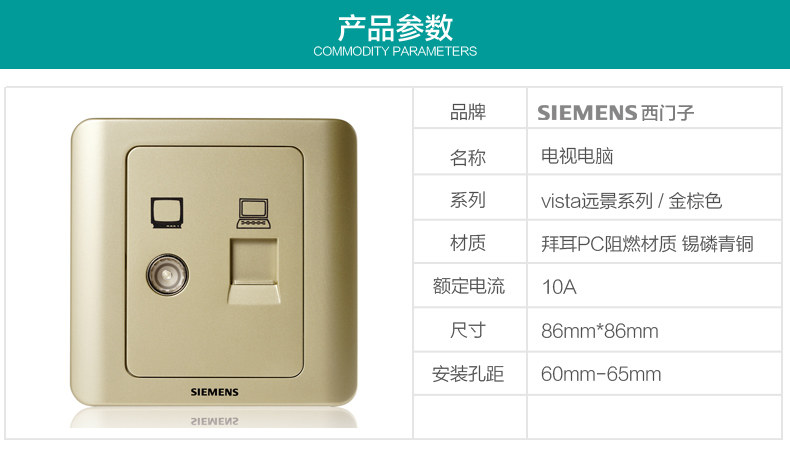 Siemens TV Cable Socket Vision Золотой коричневый переключатель двух -порта