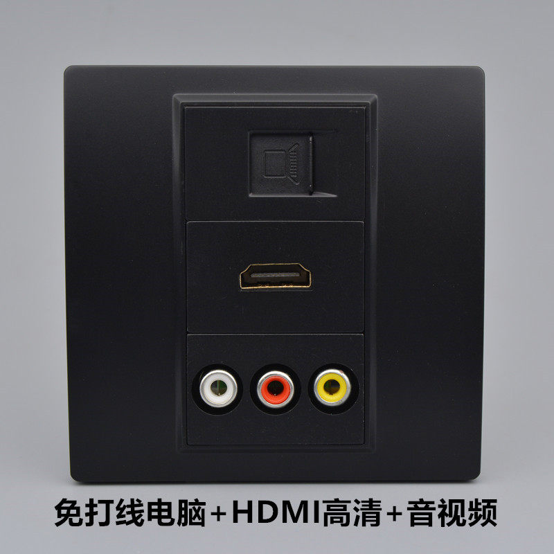 Black 86 Multimedia Free Welding Av Lotus Sound Video Socket+Computer Network Socket+HD HDMI панель