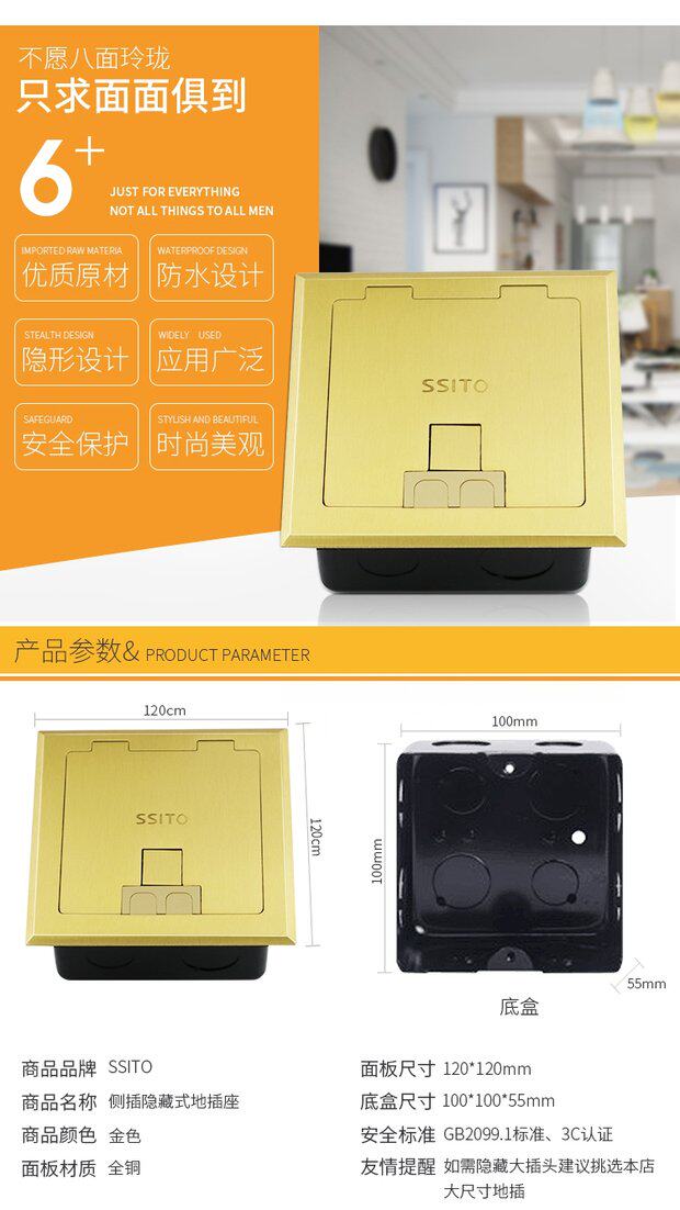 Боковая заглушка Скрытая заземляющая сеть мультимедийная сеть пять -отверстие шесть -отверстие Audio 120 открытая водонепроницаемая земля вставлена медь