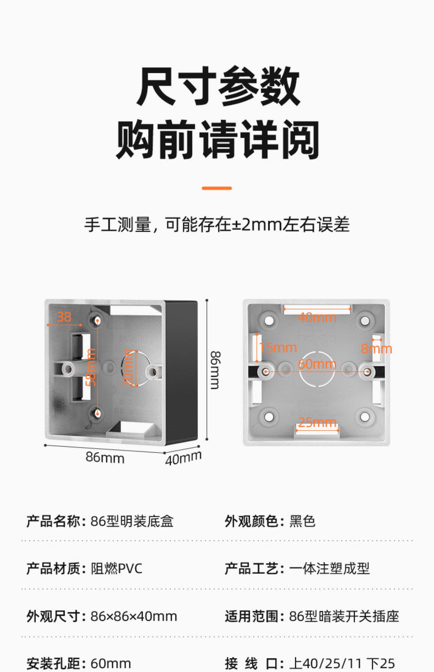 Черная толщина света установка нижняя коробка 86 -тип плюс высокий роспись для коробки -коробки