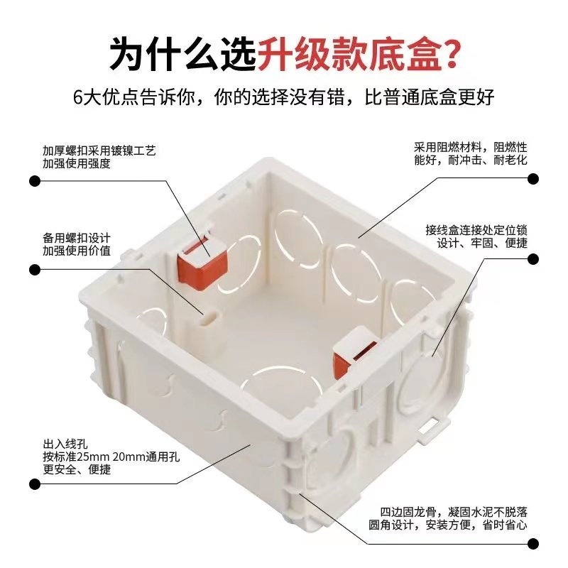 Бесшовная стыковочная коробка типа 86, встроенная проводка, розетка из ПВХ, бытовая нижняя коробка, универсальная сборная скрытая соединительная коробка