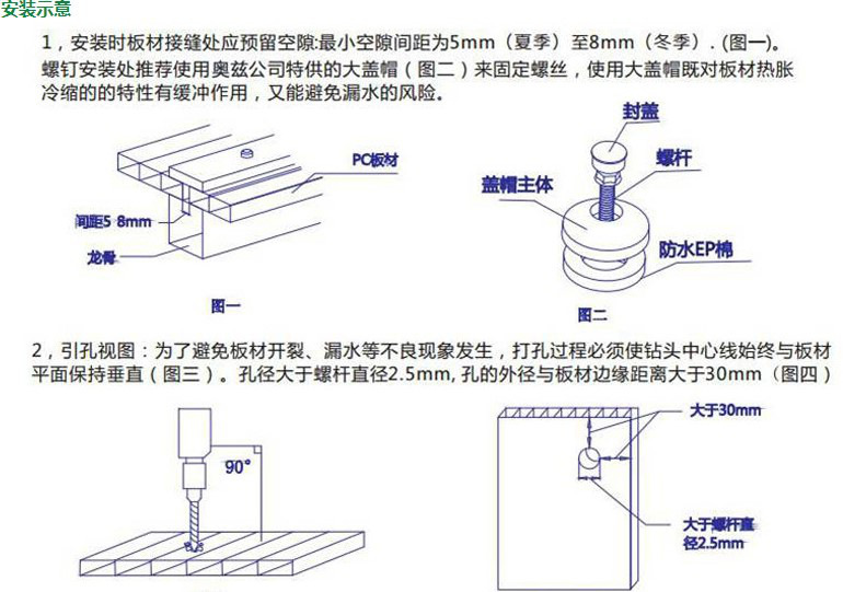 4. Когда требуется бурение, пластины будут перемещать из -за расширения. Диаметр бурового отверстия должен быть более 50%в диаметре винтов. Когда бурение с четырех сторон он должен находиться более 20 мм от края. тарелки.