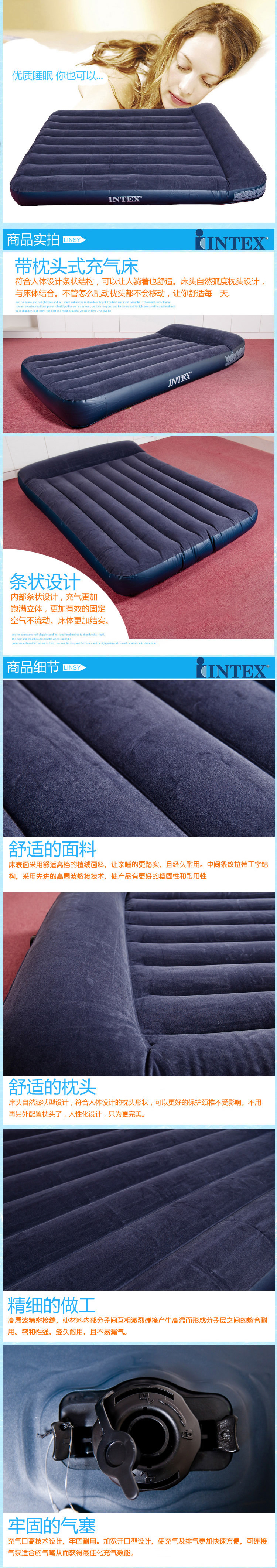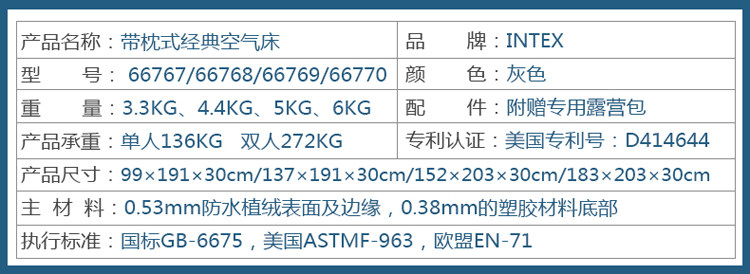 Эта роскошная воздушная кровать -типа, еще один новый продукт знаменитого американского бренда Intex в мире, -это полностью разрабатывать ваши дизайны, которые нуждаются в подушках, но хотят как можно больше минимизировать ваше пространство для переноски.Поверхность водонепроницаемости и загрязнения -надежность может легко сохранить надувной кровать в чистоте, принося вам чистый и удобный дом!