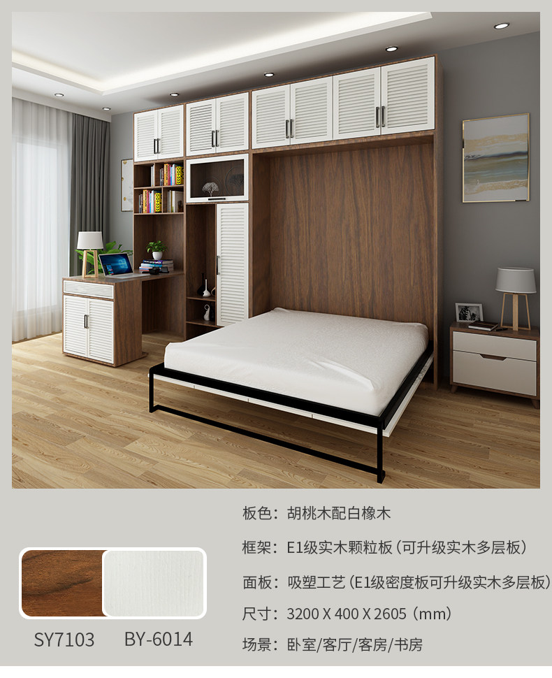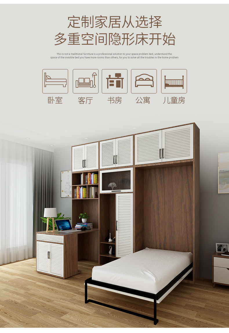 多重空间 Стеновая кровать невидимая кровать многофункциональная кровать европейская стиль вертикального вертикального вертикального рубца шкаф -кровать складная кровать складная кровать
