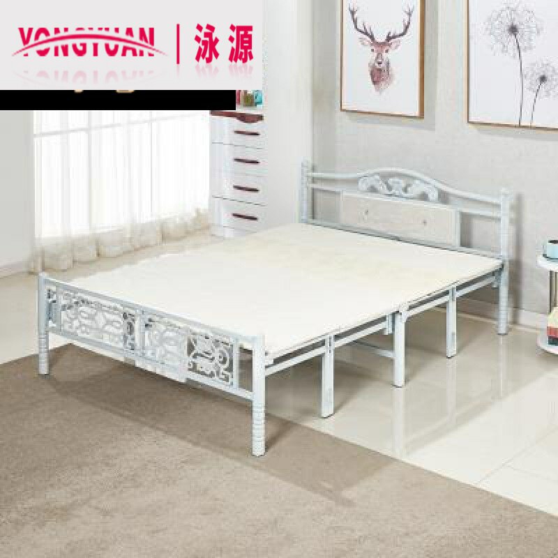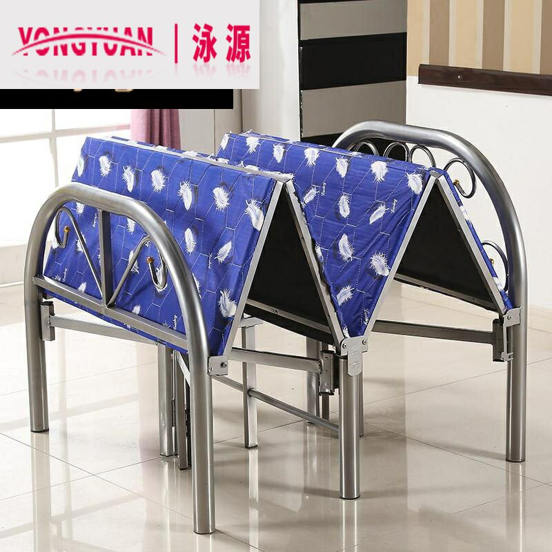 Складная складная кровать из стальной трубы с четырьмя разжирными кроватями простой обеденный перерыв на односпальный кровать для взрослой железной полки 1,2 метра 1,5 -метровый кровать для деревянной борт