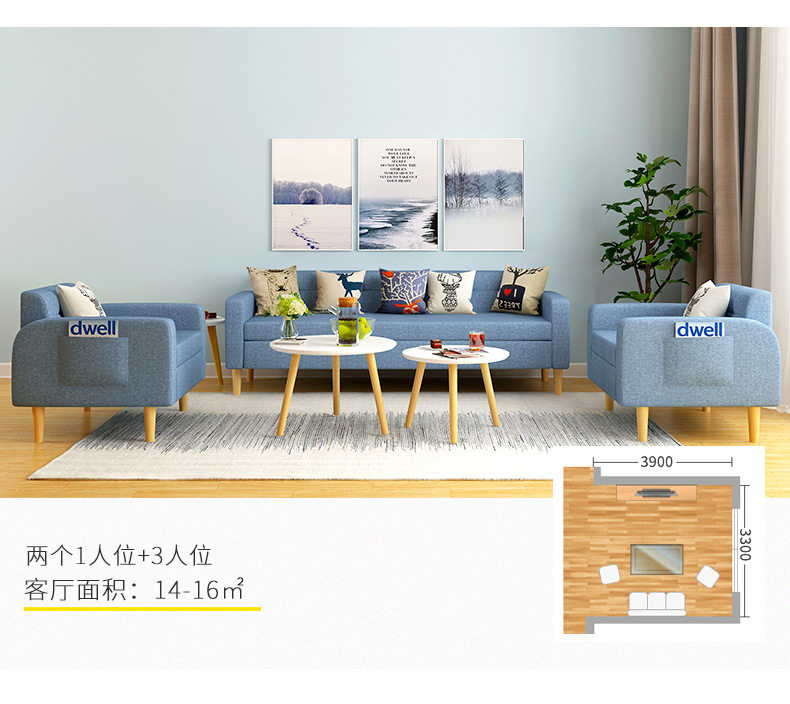 Ткань, диван, простой съёмный комплект для двоих для гостиной, европейский стиль