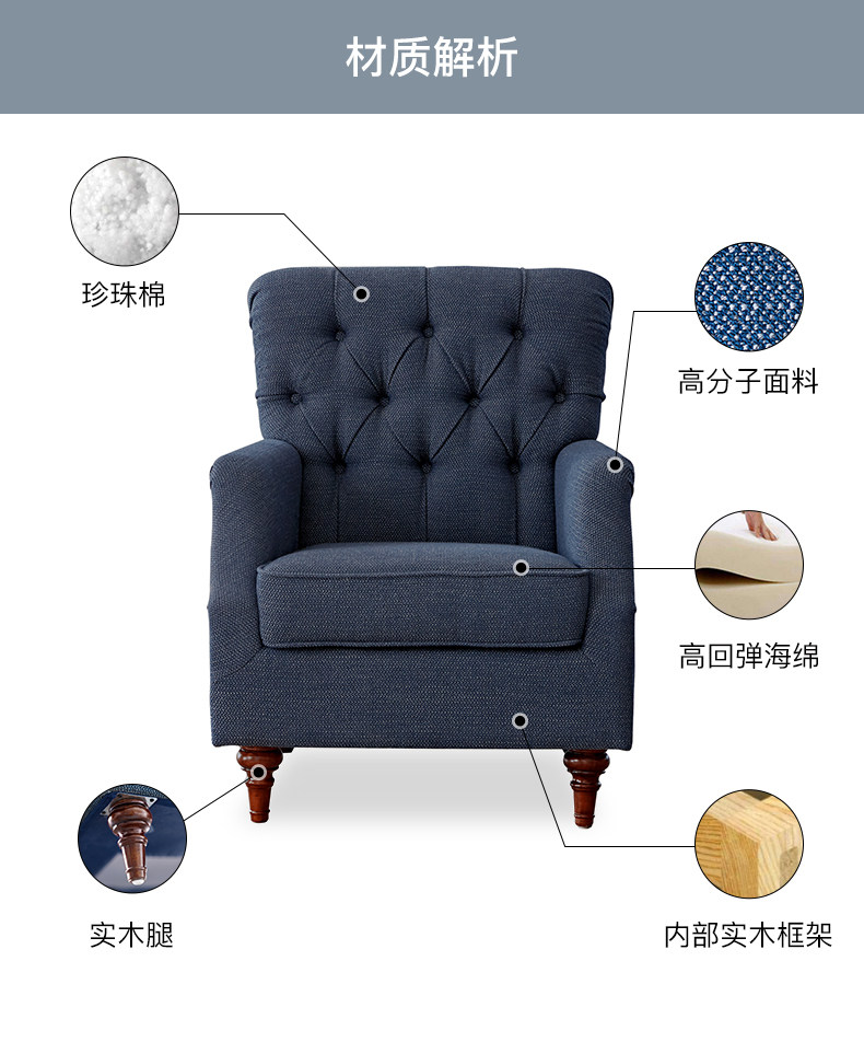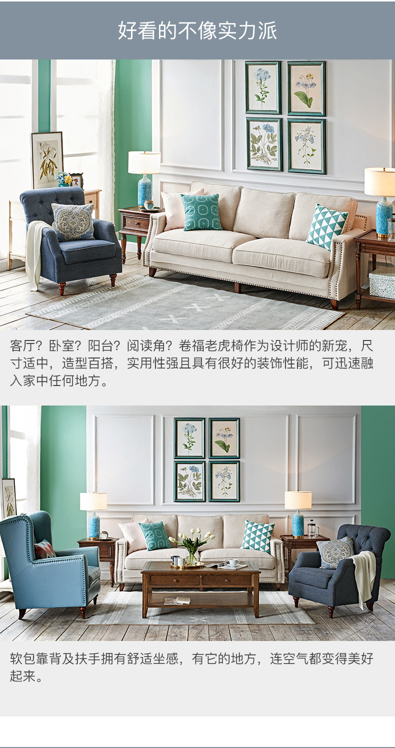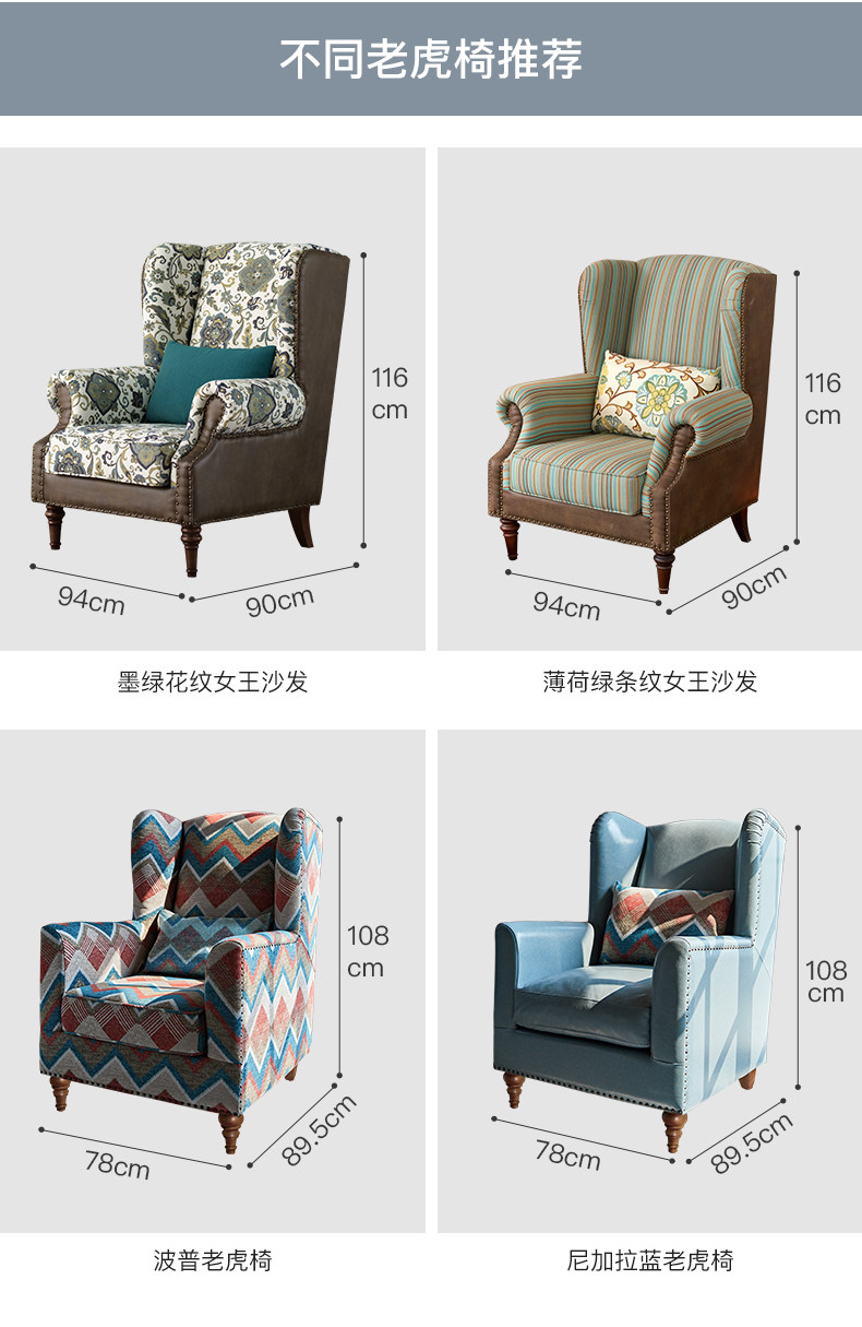 巢趣 Ткань, ретро диван для гостиной для отдыха, в американском стиле, тигр