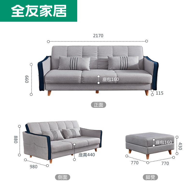 [Субсидия на бренд] Quanyou Home Складной диван -кровать и двойной диван с двойным использованием небольшая квартира 102515