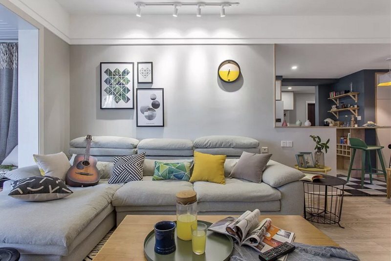 Тканевый диван Feitong Malofu, светло-серый, одиночный подлокотник на три человека + императорская наложница, простой и модный.