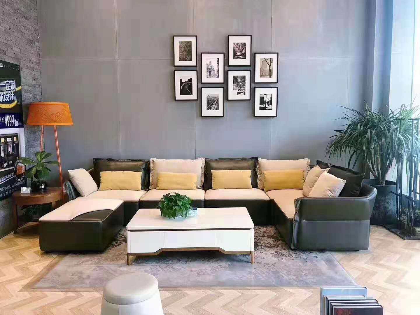 Диван нарушает традиционную модель дизайна дивана и использует боковую часть из кожи.
