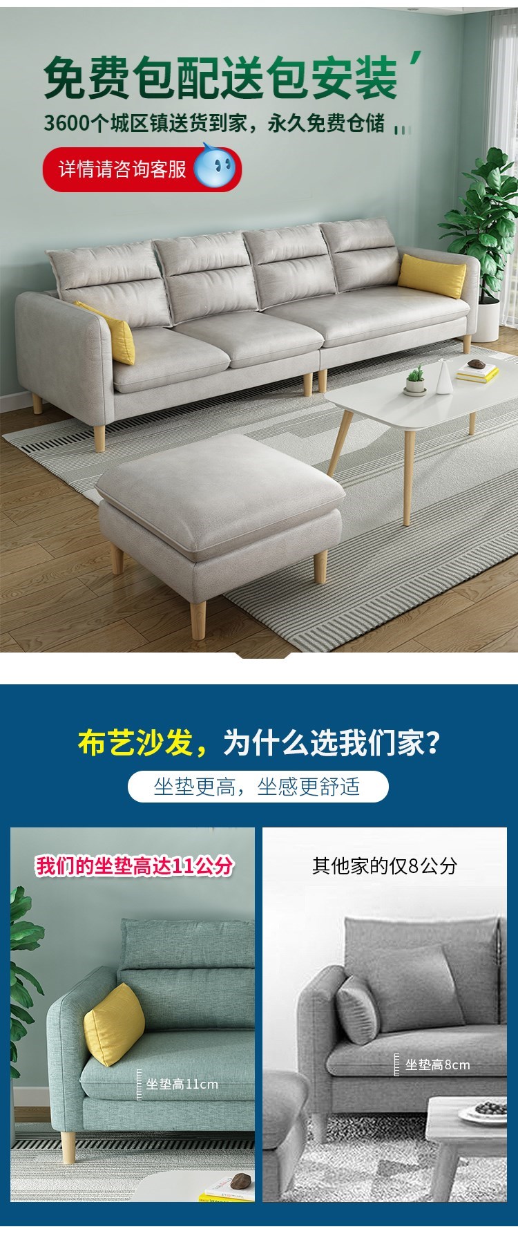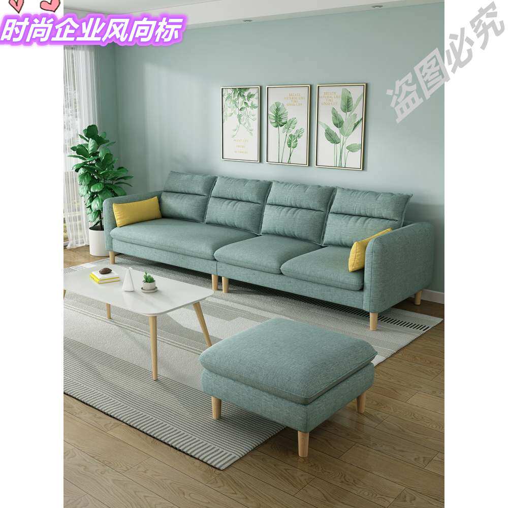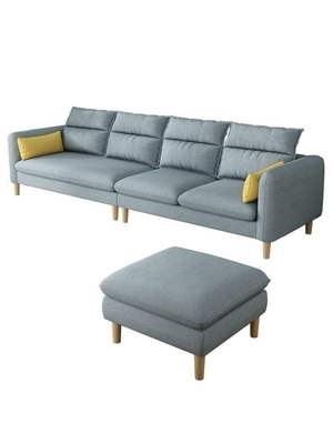 В одном словом диване в небольшой квартире используется четырехместная линия дварф -линии длинной квадратной линии с тремя личными экономическими обычными сельскими диванами.