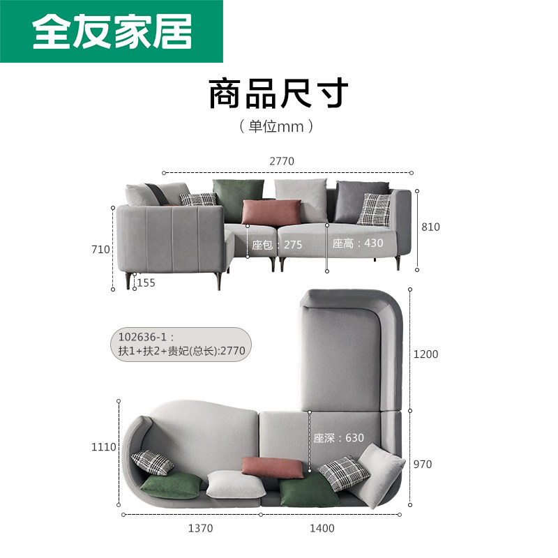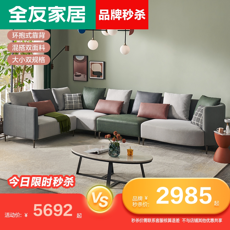 [Brand Subsidy] Quanyou Home Маленькая квартира, тканевая ткани, современная легкая роскошная технология ткани диван 102636