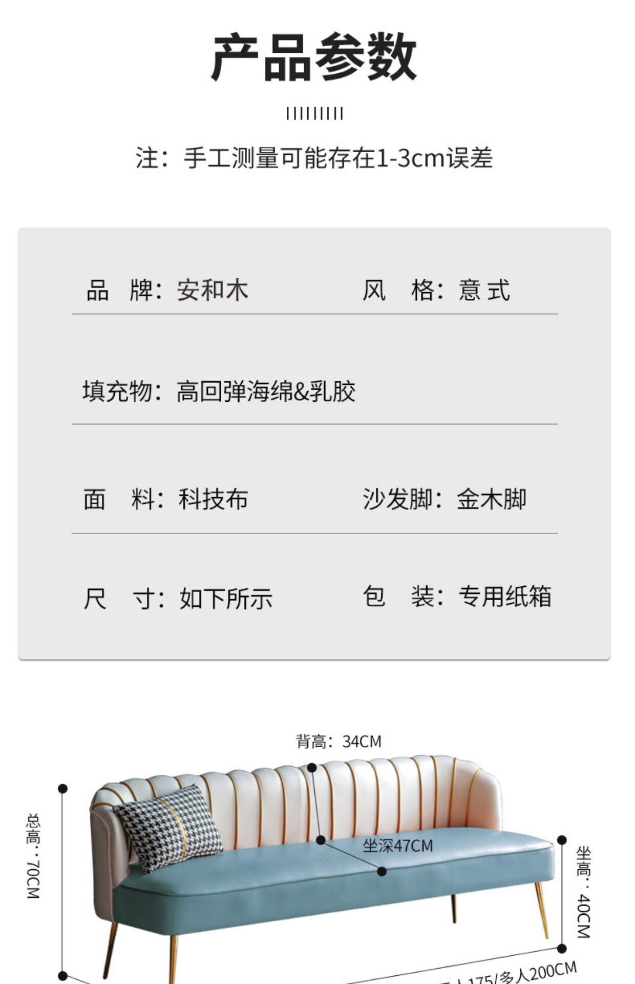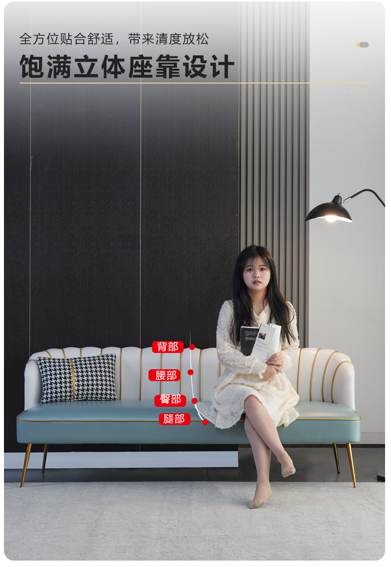 Итальянский двойной диван -простой, легкий роскошный отдых -Королевская домала квартира Гостиная гостиная Небольшая квартира Технологии