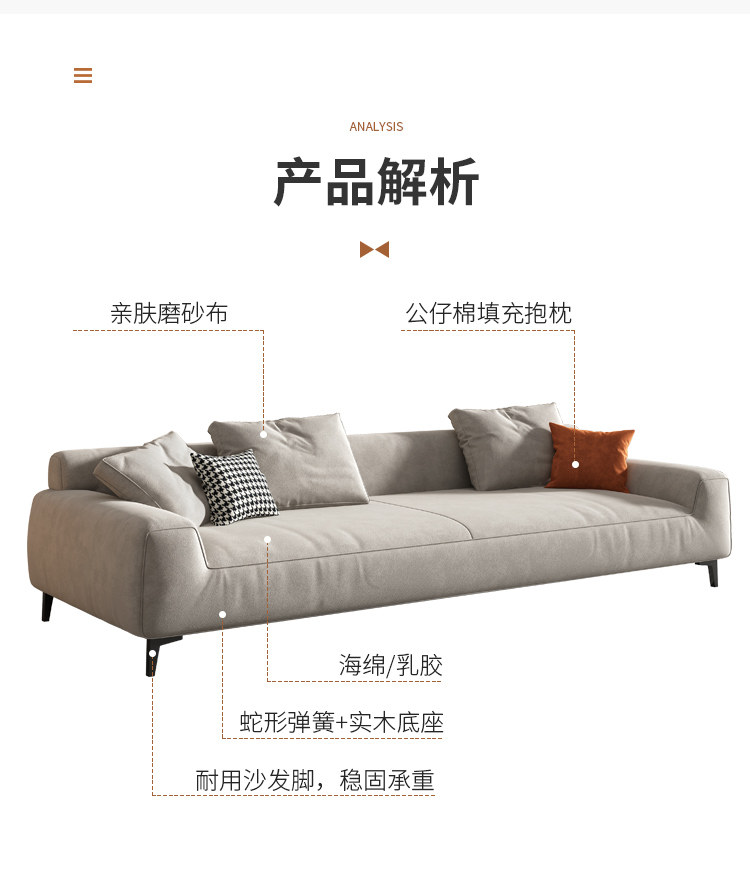 Light Luxury Minimalist Small Apartment Dofa Living Room, три человека, четырех человек, четырехпермер технологии ткань матовой ткани.
