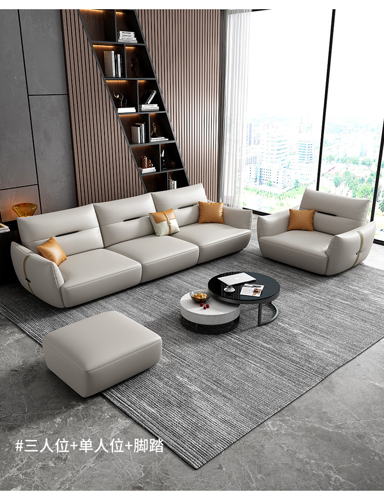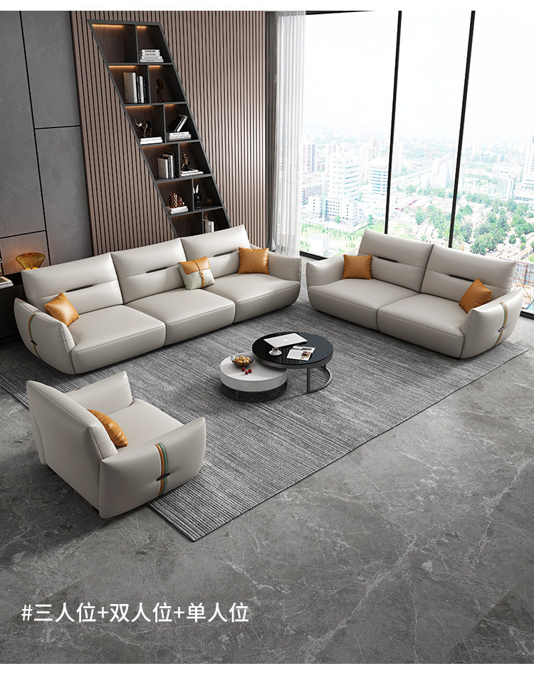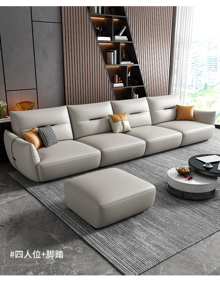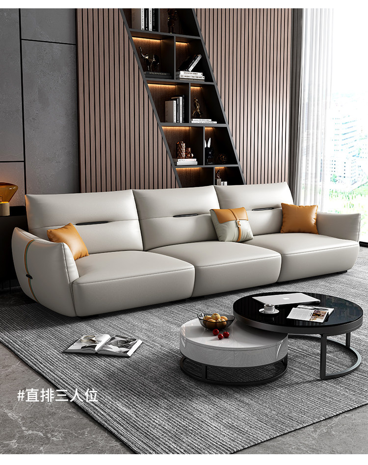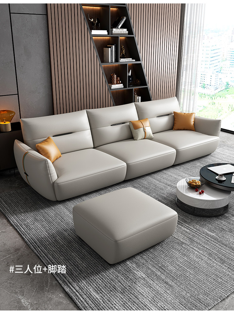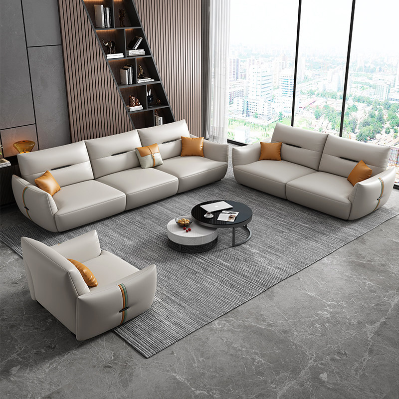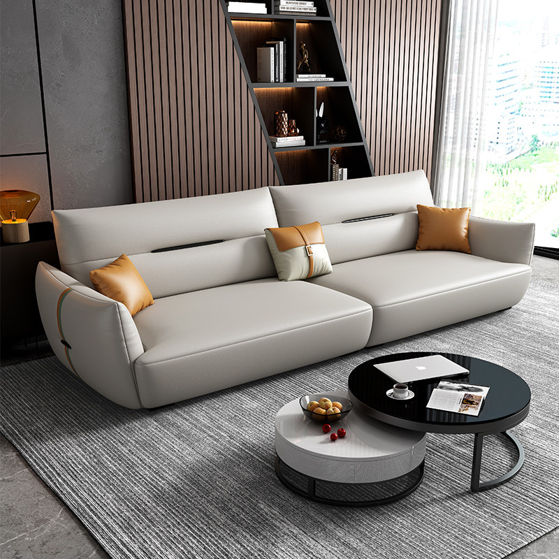 Современный кожаный кремовый диван, воловья кожа