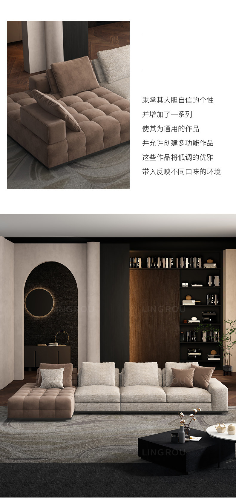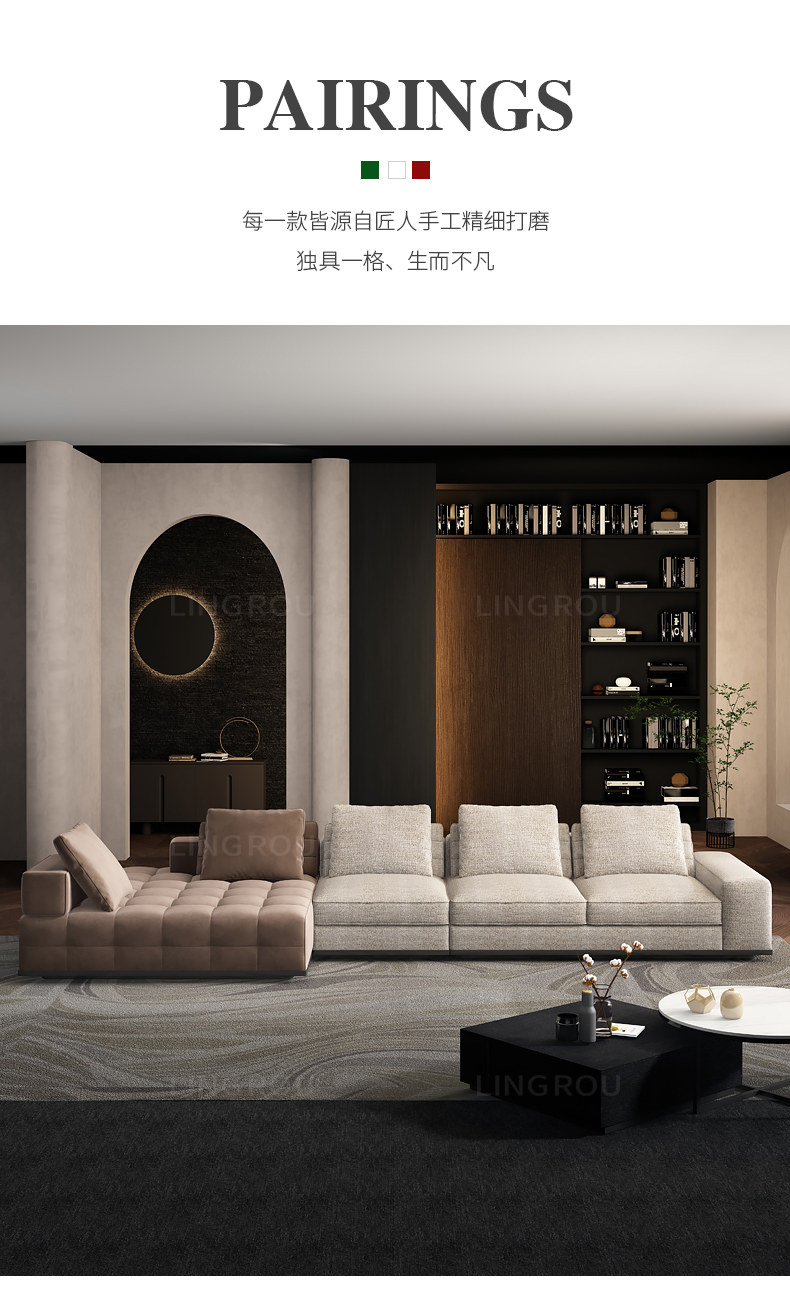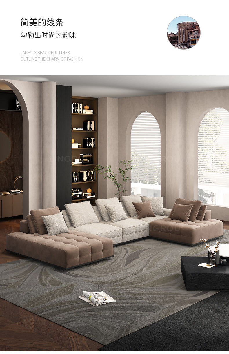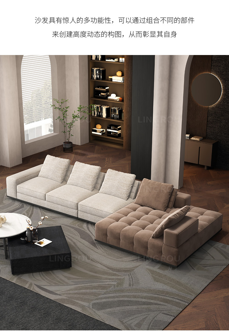 灵柔 Ткань, минималистичный диван для гостиной, простой и элегантный дизайн