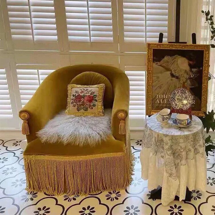 Небольшой французский стиль ретро -стиль одиночный диван -стул винтажный бархатный кисточник изучение спальни интернет -знаменитость досуга кресло для отдыха