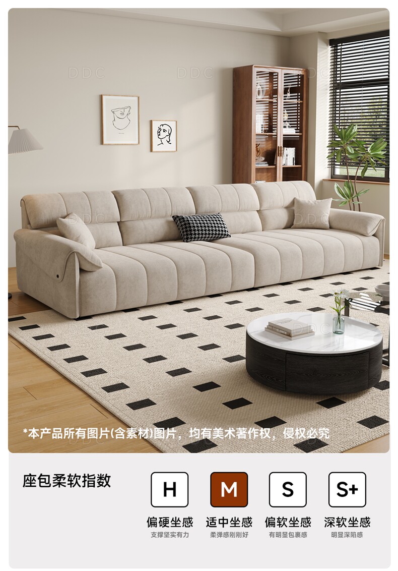 Правительственная субсидия DDC, кремовый стиль, прямой ряд, диван из кошачьего флиса, гостиная, маленькая квартира, тканевый диван со слоновьими ушками