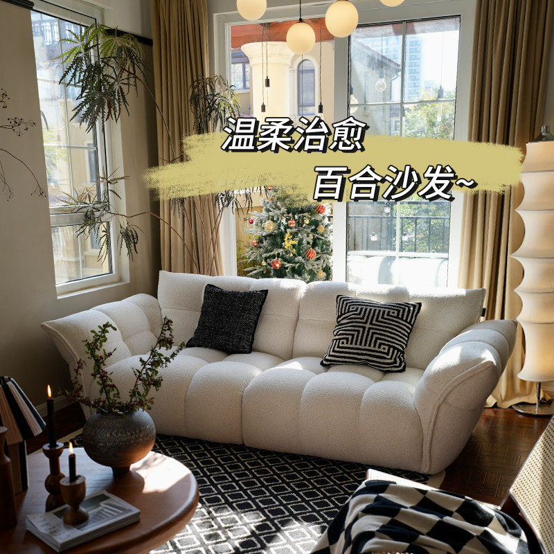 莫语 Дизайнерский ретро диван, белая кремовая ткань, французский стиль