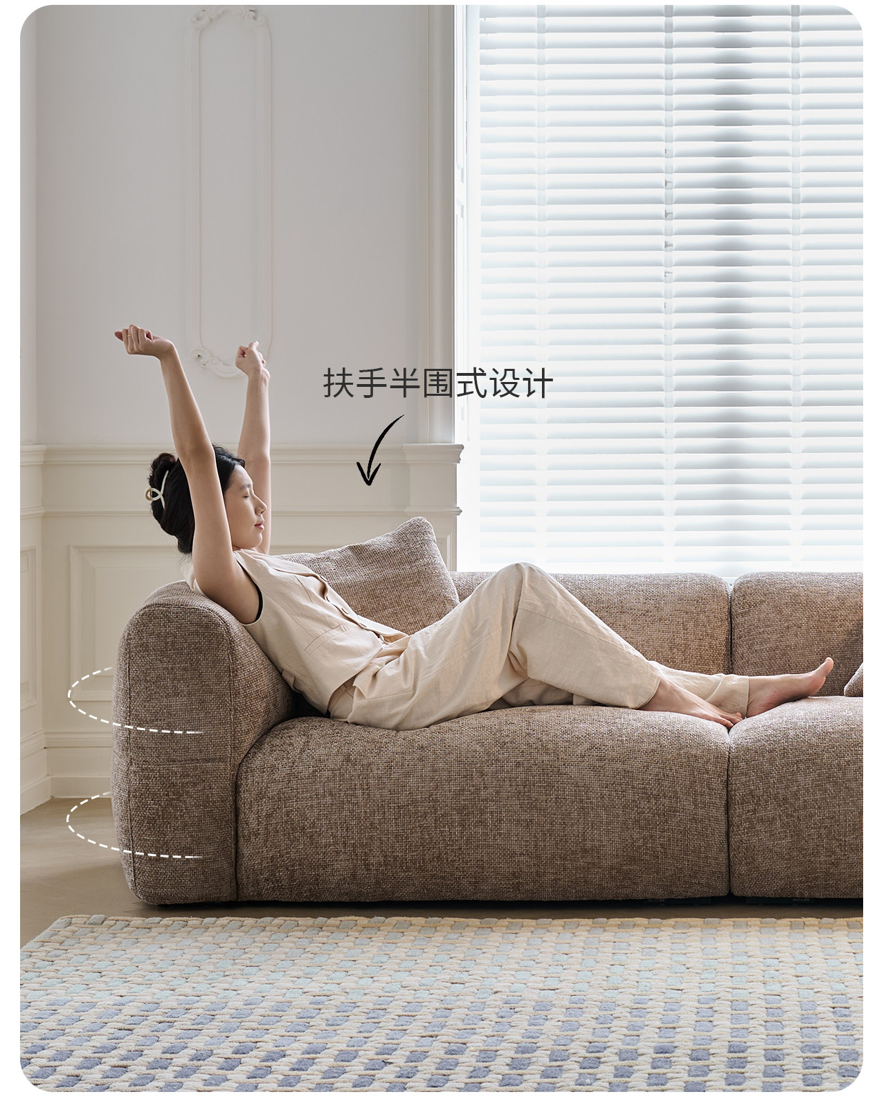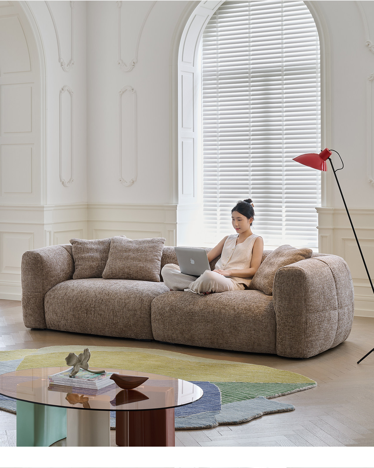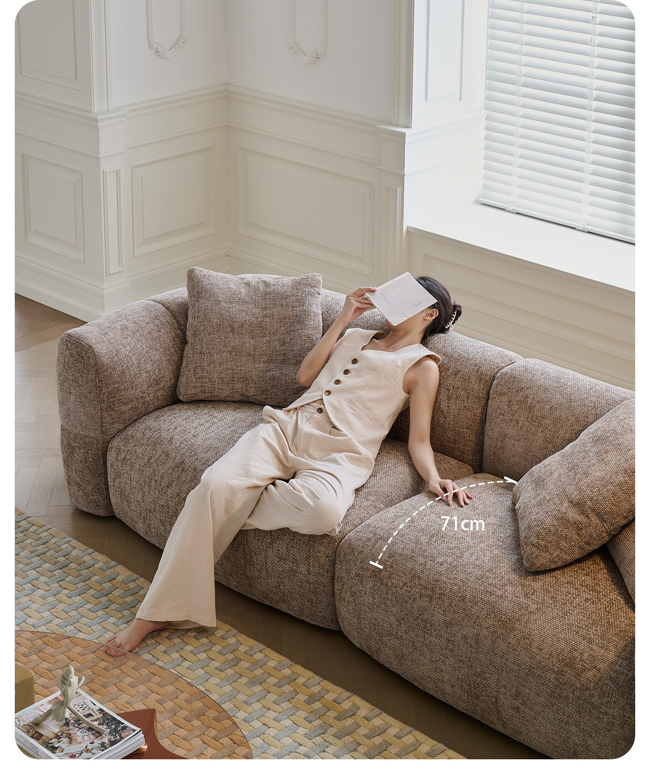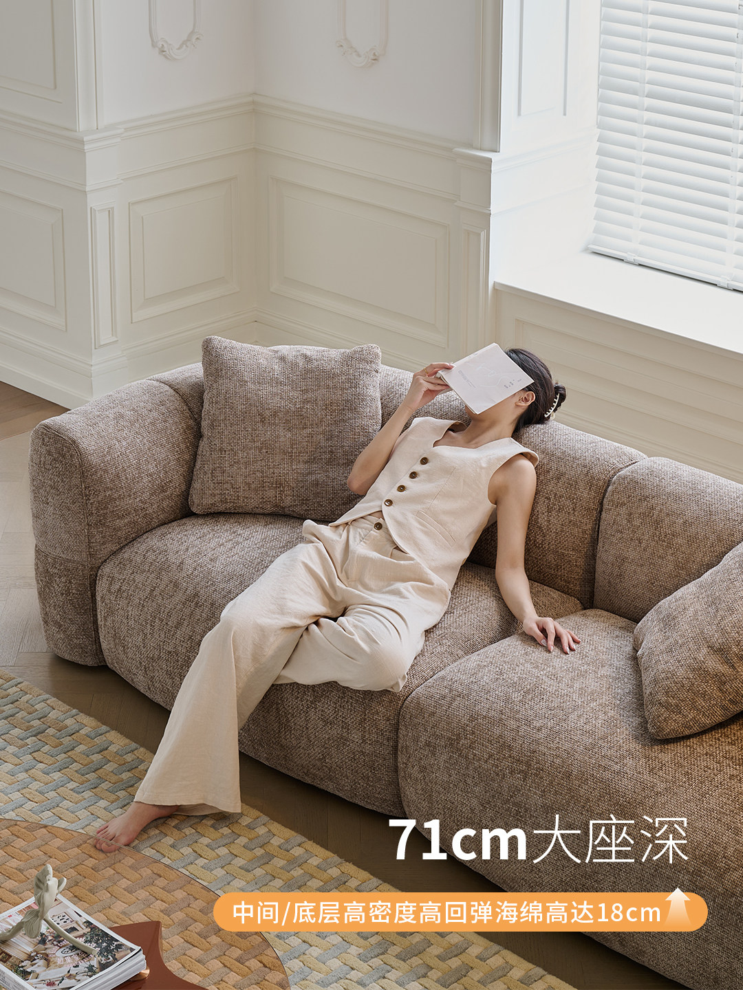 莫语 Ретро диван, коричневая кремовая вилла, ткань, французский ретро стиль