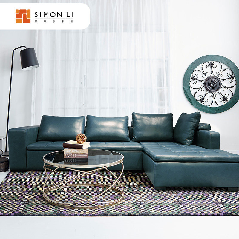 Полно -божественный кожаный Simonli Simon Lee Nordic Style Leather Ladie Cropding большой L -тип диван C070