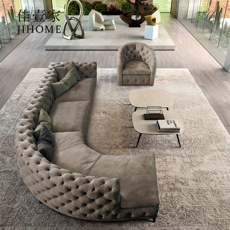 Итальянский легкий роскошный кожаный угловой диван гостиная вилла роскошное жилье