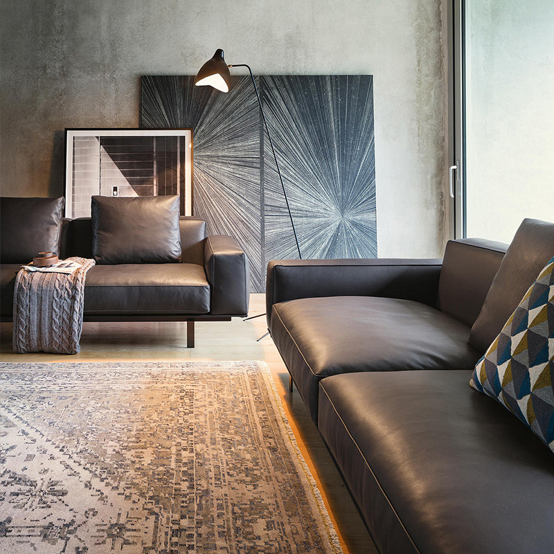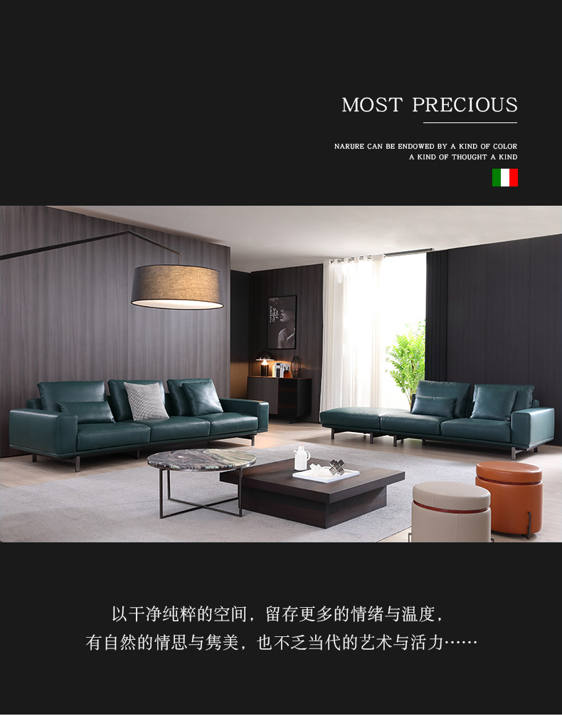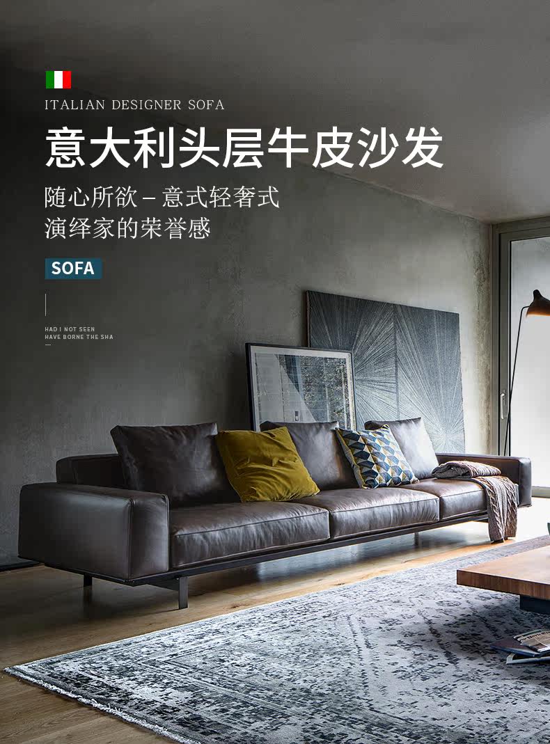 芈家锐驰 Кожаный современный диван с пухом, минималистичная вилла, воловья кожа