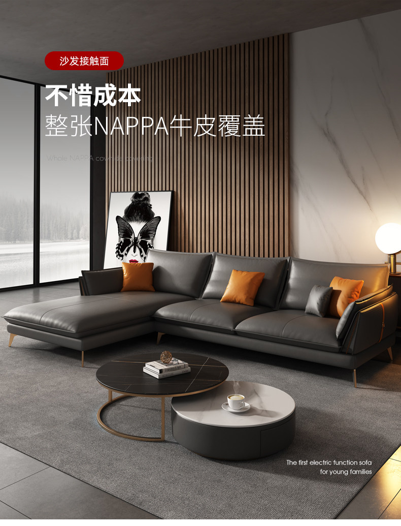 - Импортная натуральная кожа первого слоя Napa + оригинальный латекс, двойные подлокотники, одинарное сиденье 1,1 метра.