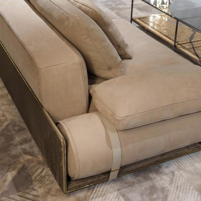 [Donovan Roll Sofa] плавающая основание из нержавеющей стали, инновационный круглый дизайн поручника в сочетании с различными сложными ремеслами, такими как производные и ремни, полная свободы и бесконечного воображения, создавая пространство для по -настоящему роскошного воображения.