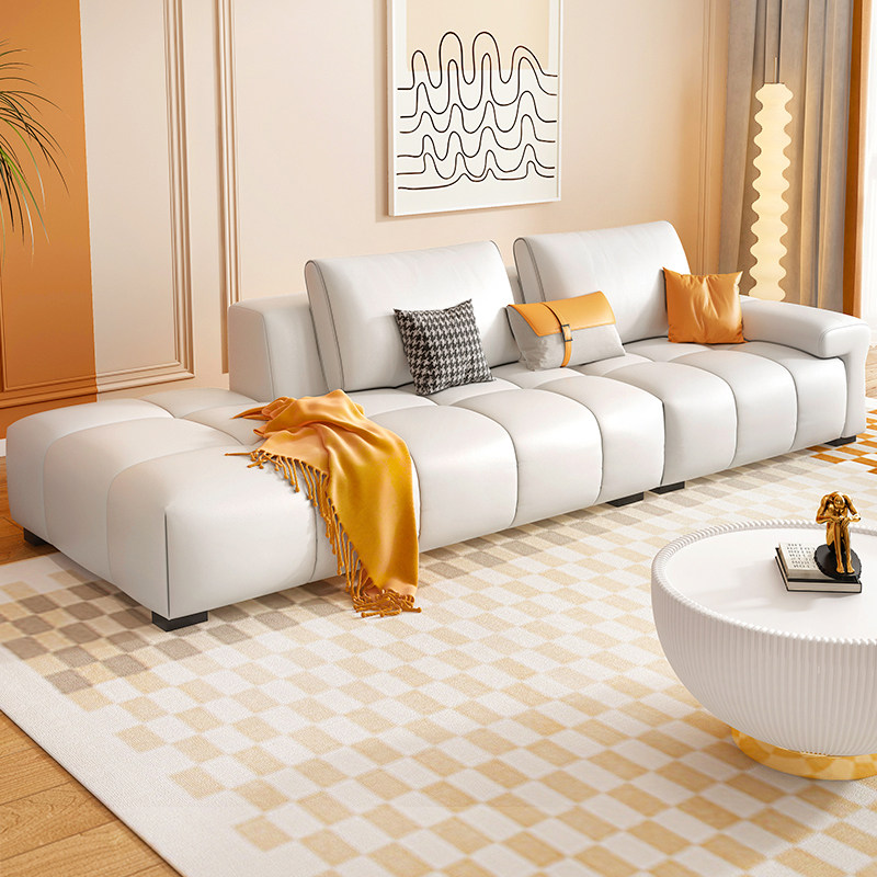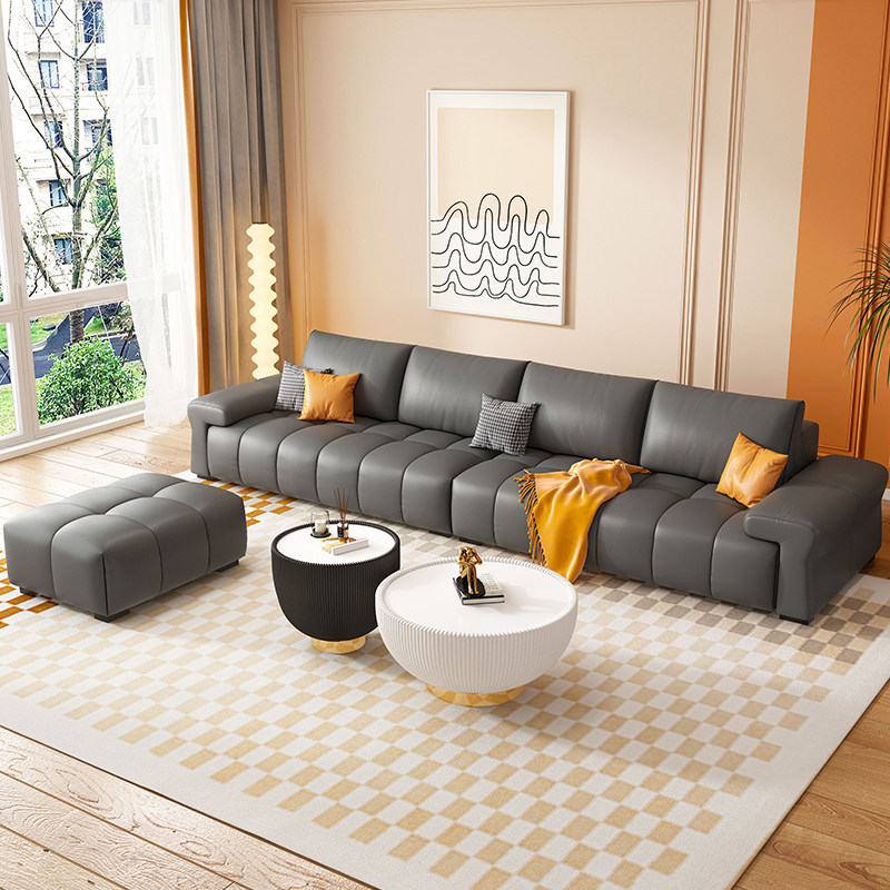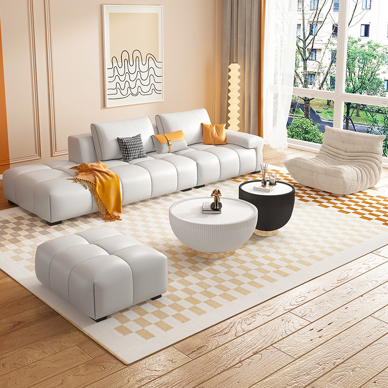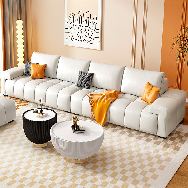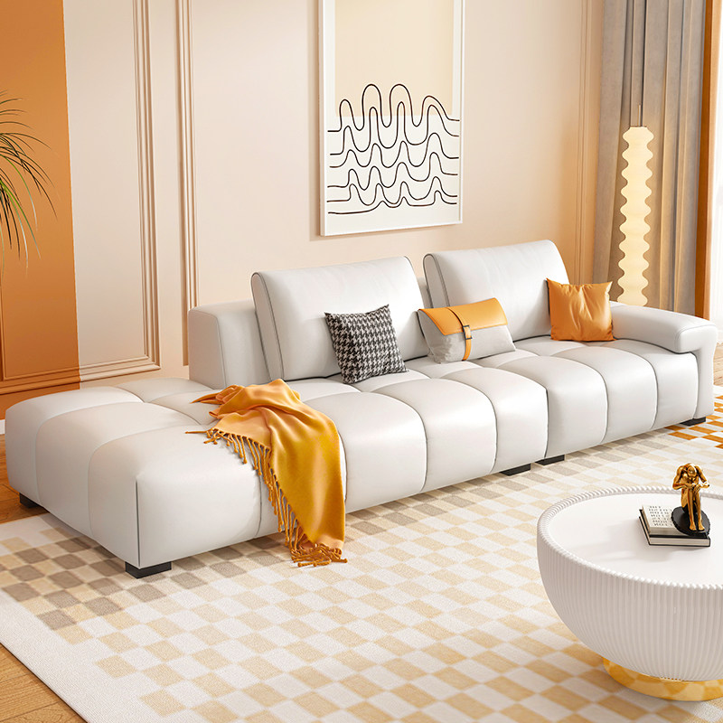Итальянский минималистичный светлый роскошный кожаный диван для гостиной, современный простой скандинавский дом, трехместный креативный прямой диван особой формы