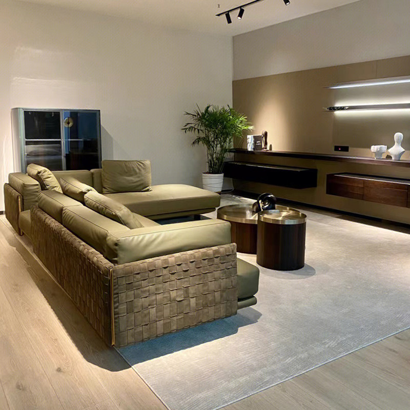 Минималистичный плетеный зеленый диван, элитная кожаная вилла, Италия, воловья кожа