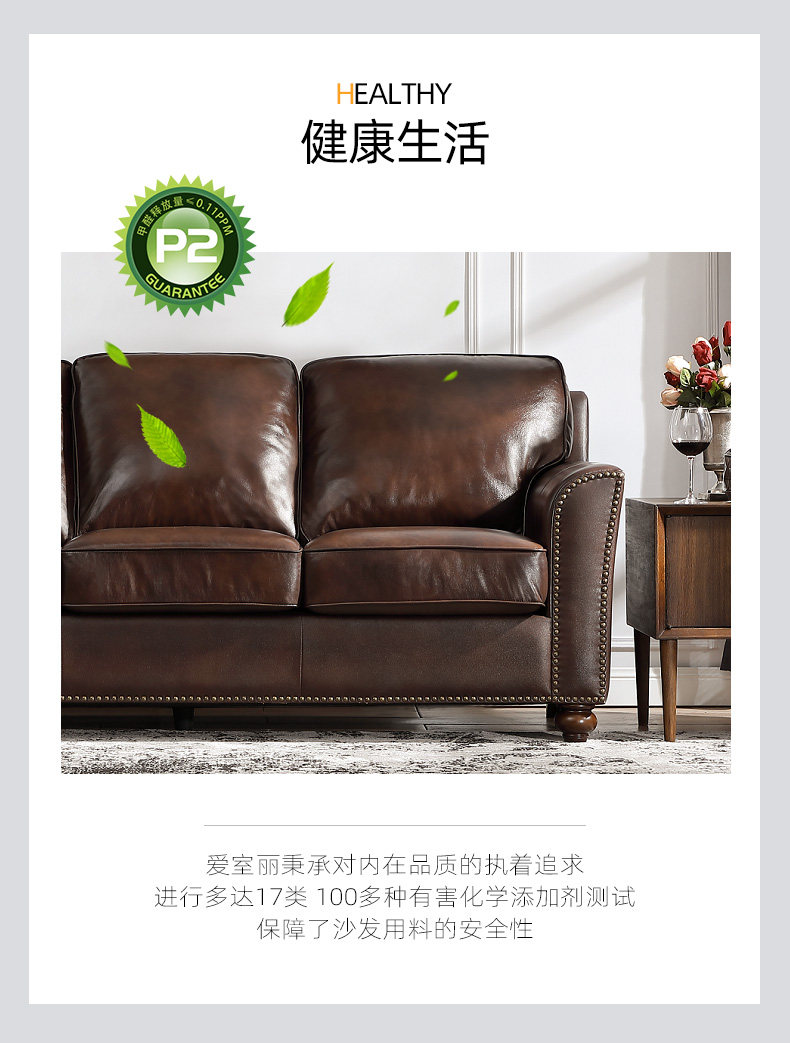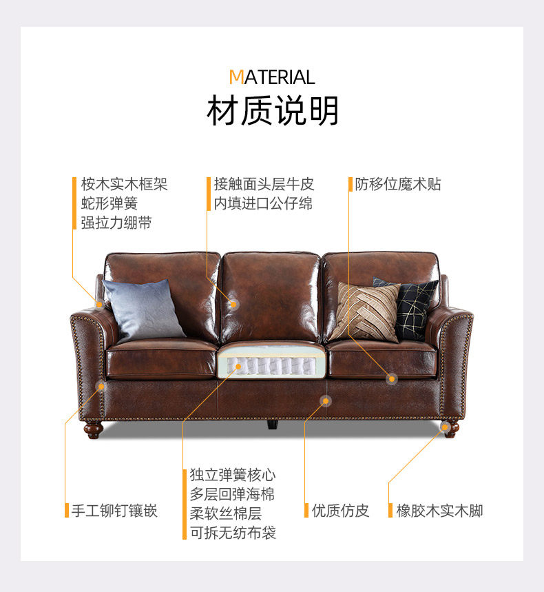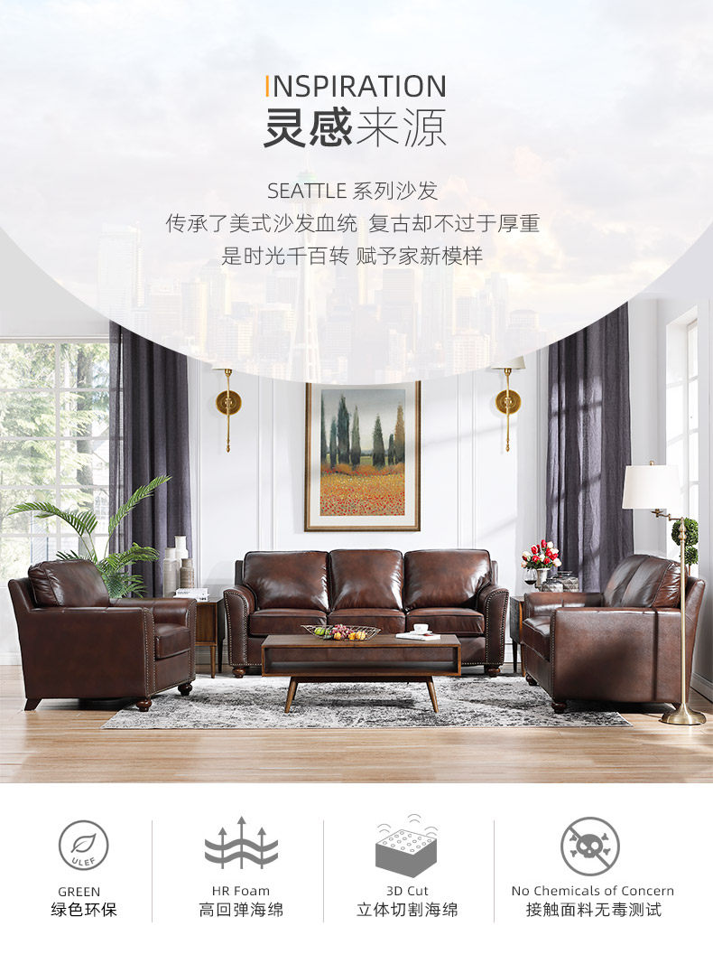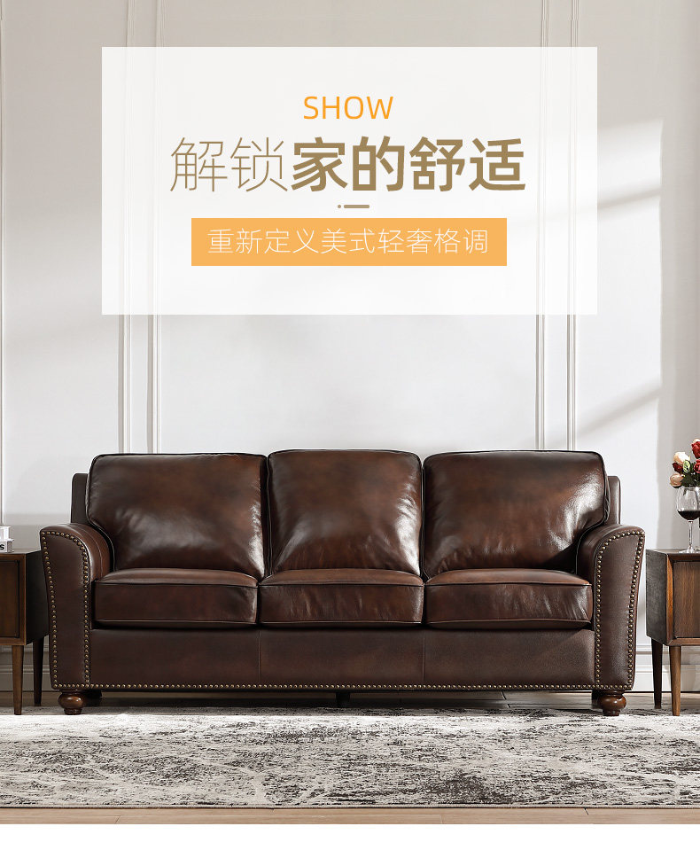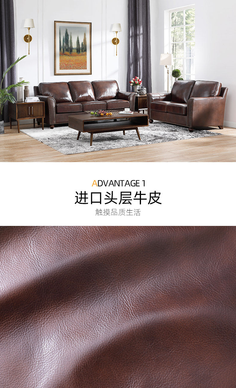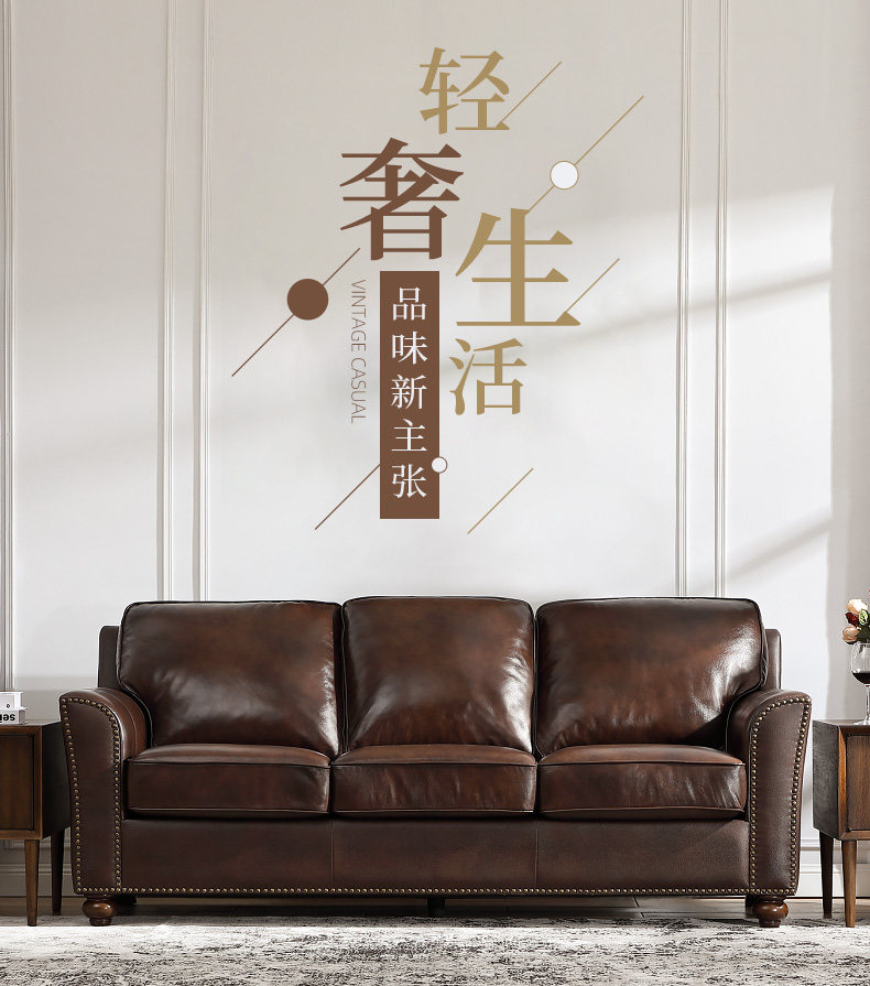 Эшли Айшили, американская деревенская маленькая квартира, трехместная гостиная, ретро, первый слой, диван из воловьей кожи 875