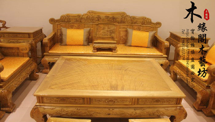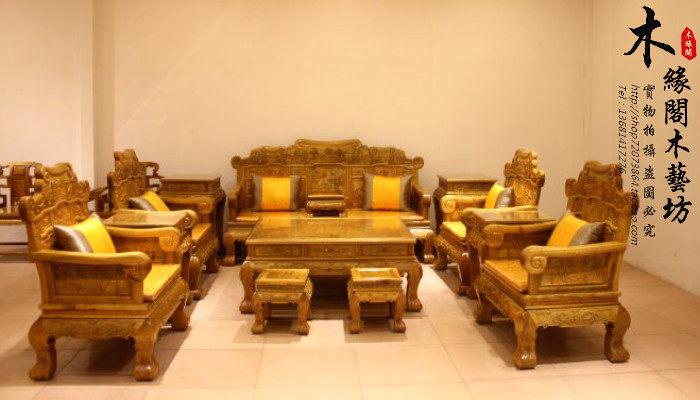 Золотой шелк нанму мебель диван Тринадцать комплектов чайного стола Камелия