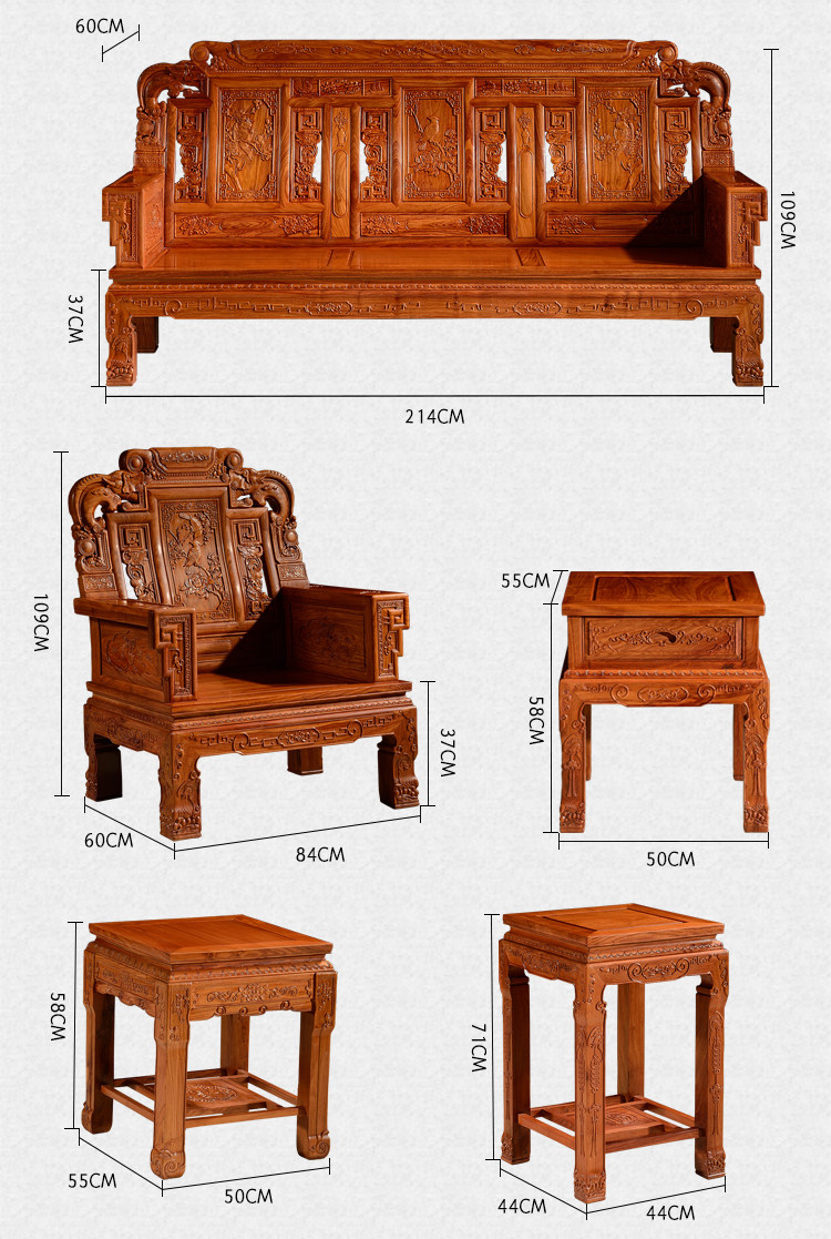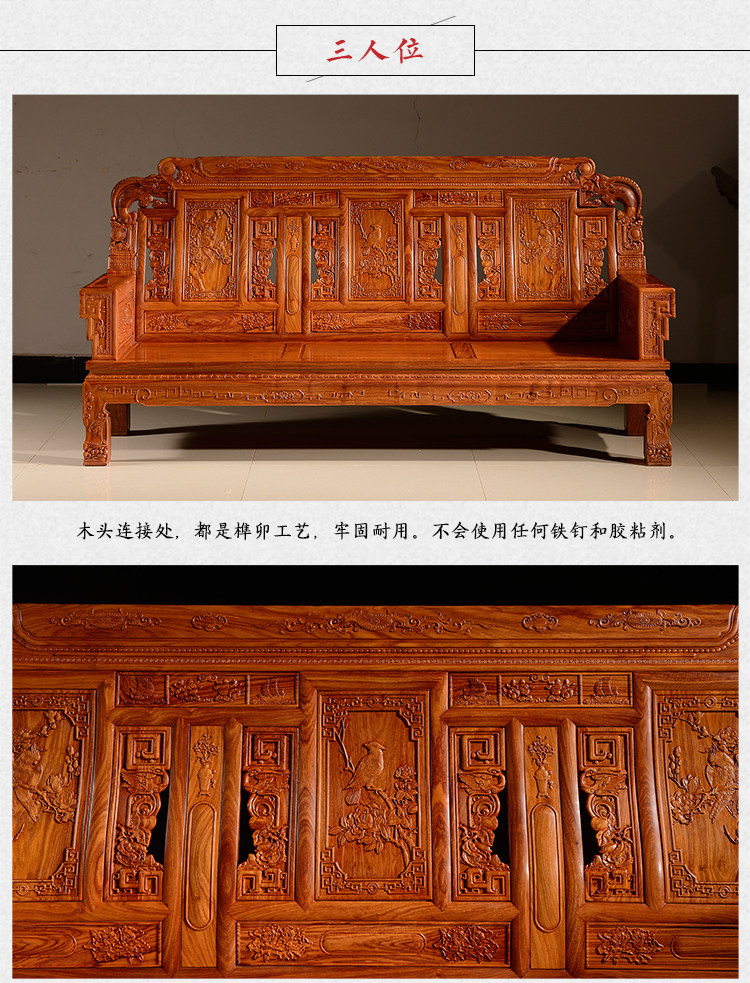 Классический диван из палисандра из натурального дерева