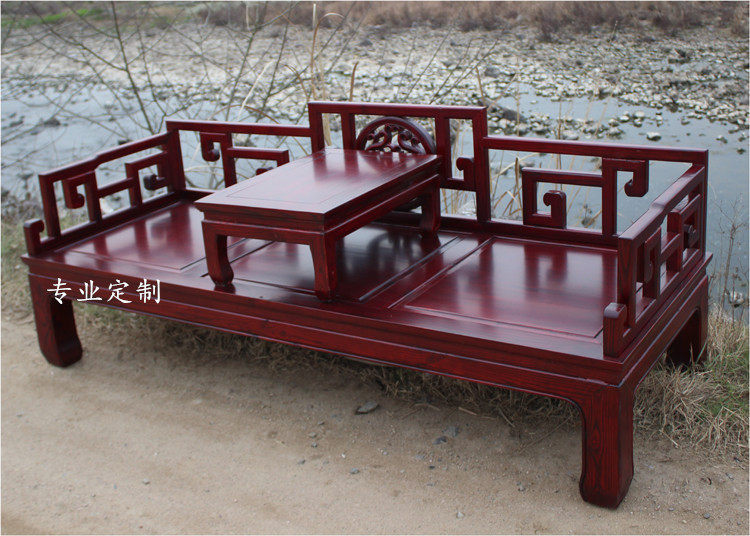 Новый китайский стиль гостиная с твердым деревянным диваном Комбинированный журнальный столик дзен маленький маленький маленький офис Классическая простая кровать Luohan