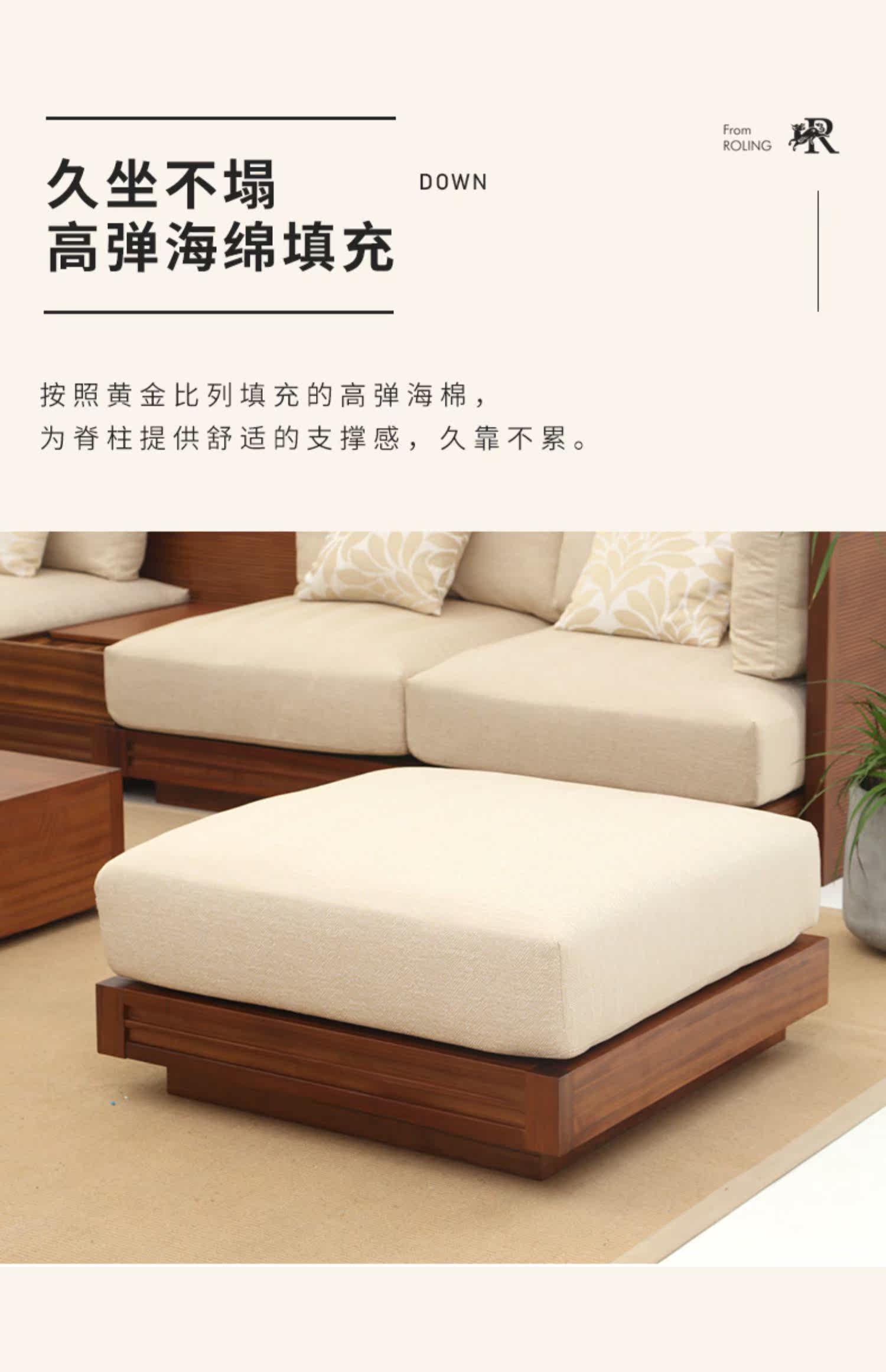 Ронглин Бетель ореховой диван Новое китайское сплошное дерево сочетание дивана в юго -восточном стиле Азии