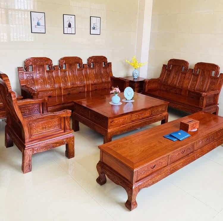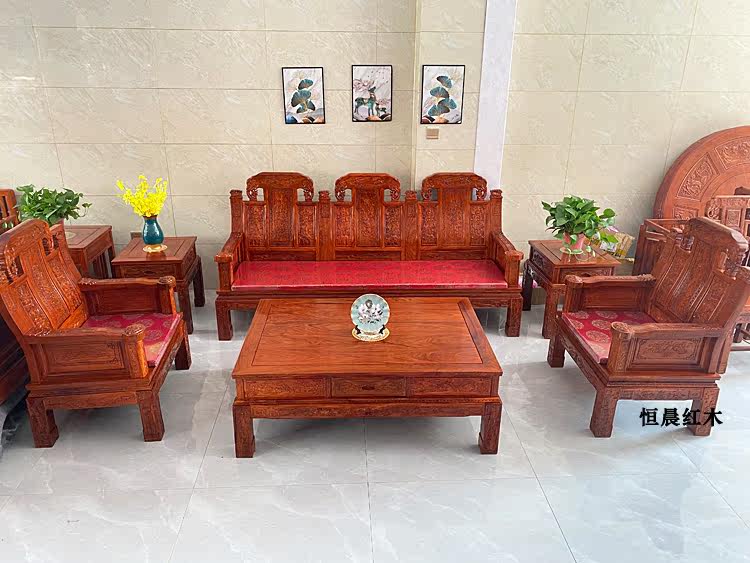 Махогановая ежа розовообразное дерево голова слона Руи диван гостиная классическая розовая деревья китайская мебель Комбинация маленькая дом бесплатная доставка