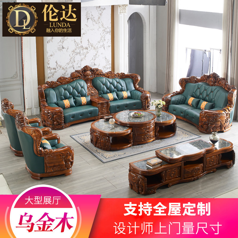 Lerodu Jinmi кожаный диван Комбинация полная твердая древесина крупная квартира