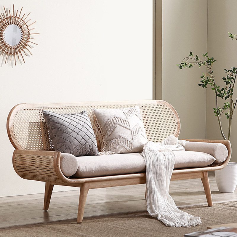 Северная европейская оригинальная деревянная виноградная лоза, диван, двойная позиция с тремя личностями кофейного столика Группа Маленькая квартира Гостиная