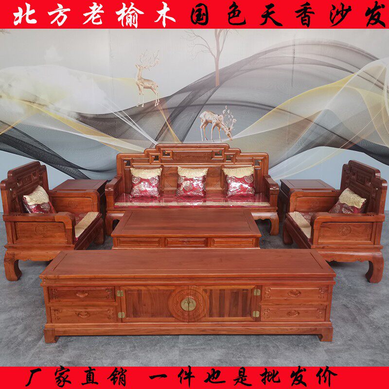 Клык Лао Лоо Вяз Сплошное дерево диван Новый китайский китайский китайский стиль китайский цвет гостиной гостиная
